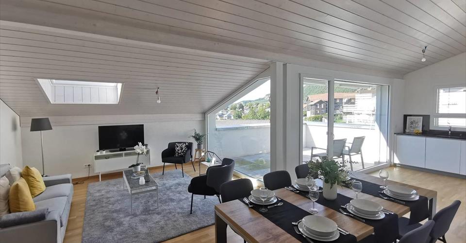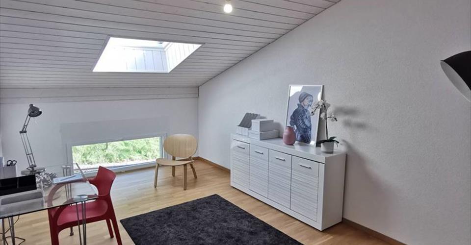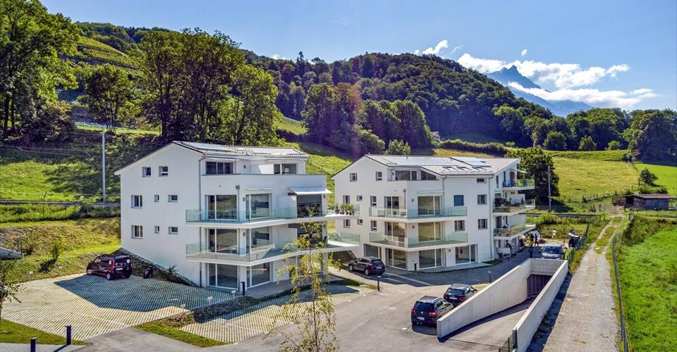 Libre de suite, spacieux et lumineux appartement en attique de 4.5 pièces traversant situé dans la résidence « Les Terrasses du Chablais ». La Résidence « Les Terrasses du Chablais » propose 40 appartements répartis en 4 immeubles allant du studio au 4.5 pièces ainsi que 5 surfaces commerciales le tout desservi par un parking souterrain. Points forts : Ventilation double flux, stores électriques dans toutes les pièces sauf salles d’eau, colonne de lavage-séchage offerte. Le lot No 431 situé dans les combles propose une surface pondérée de 117 m2 avec balcon de 12 m2. Il est composé comme suit : Hall d’entrée avec armoire – Cuisine équipée ouverte – Séjour/salle à manger avec accès au balcon – Salle de bains/WC/lavabo avec colonne de lavage-séchage – Salle de douche/WC/lavabo – Trois chambres Sont également disponibles de duite des appartements de 2 ½, 3 ½ , et 4 ½ pièces ainsi que des surfaces commerciales de 69 m2 à 178 m2. Places de parc extérieures : CHF 15’000.- Places de parc intérieures : CHF 30’000.- Installation d’une borne de recharge électrique possible sur la place de parc Baignée par le soleil, la commune d’Ollon, 6ème du canton en termes de superficie, jouit d’un agréable microclimat. S’étendant du Rhône (alt. 391 m) au Chamossaire (alt. 2’112 m), son paysage est harmonieusement composé de terres agricoles, de vignes, de forêts, de pâturages, de cours d’eau, au milieu desquels 23 villages et hameaux se sont confortablement érigés. Ollon est réputée pour ses grands vins et Villars pour son superbe domaine skiable. Le village est desservi par le train AOMC (Aigle-Ollon-Monthey-Champéry) dont un arrêt se situe à quelques pas de la résidence. La desserte autoroutière quant à elle n’est éloignée que de 2 km. A quelques centaines de mètres se situent les établissements scolaires allant du jardin d’enfants au secondaire.