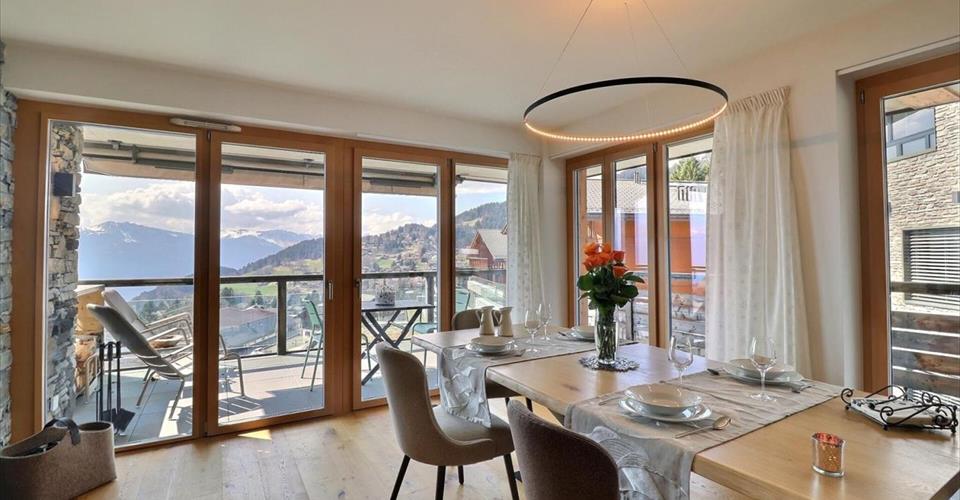 La résidence Alpine Hedonia sis au coeur de la station de Villars-sur-Ollon , cet emplacement est son atout majeur, proche des commerces, de toutes les commodités, de la gare et de l’arrêt du bus. Dans un style Alpin avec une approche contemporaine, ce bien offre une atmosphère moderne et chaleureuse. Il bénéficie d’une large terrasse à la vue panoramique imprenable sur les Alpes et le massif du Mont – Blanc lui conférant une ambiance propice à la détente. DESCRIPTION APPARTEMENT 4.5 PIECES : Entrée Spacieux séjour avec cheminée, fenêtres et porte-fenêtre menant au balcon Sud Cuisine entièrement équipée, ouverte sur le séjour Chambre double arrondie avec porte fenêtre menant au balcon Ouest, fenêtre Nord-Ouest, placards encastrés et salle de bain en suite avec douche Chambre double avec porte-fenêtre menant au balcon Ouest, armoire et salle de bain en suite avec douche Chambre double avec porte-fenêtre menant au balcon Sud-Ouest, armoire et salle de bain en suite avec baignoire WC séparé Charges annuelles 2025 : CHF 6’046.90 + chauffage CHF 2’373.70 + fonds de rénovation CHF 365.20 + parking CHF 715.35 Ce document n’a aucune valeur contractuelle, les informations présentées ne sont données qu’à titre indicatif et ne font pas office de contrat.