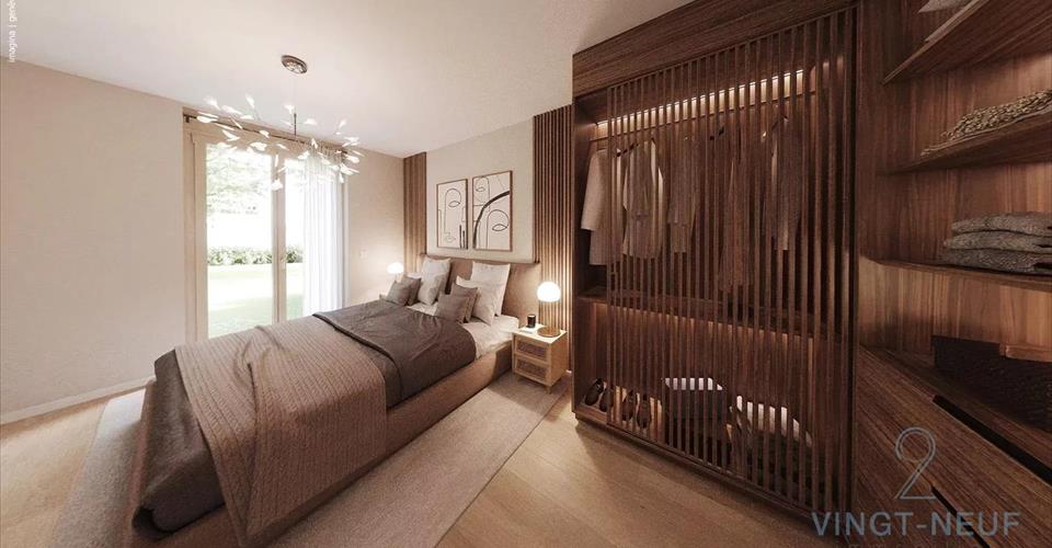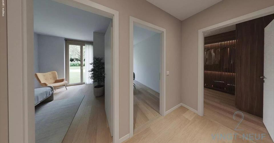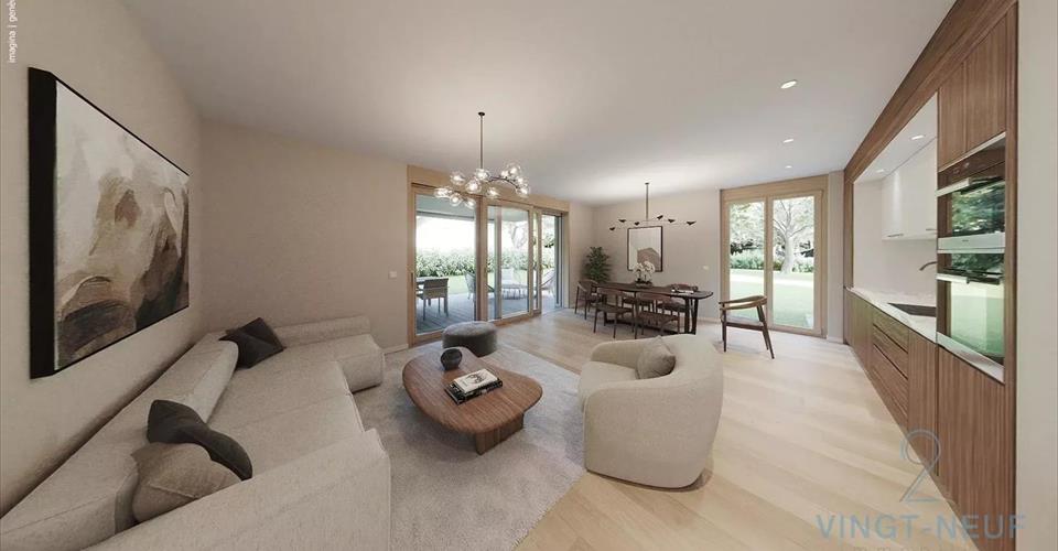 Avec une surface habitable de 98 m², cet appartement offre un équilibre parfait entre confort et modernité. Il dispose de deux chambres, d’un bureau et d’un spacieux séjour donnant sur une terrasse de 23 m² ainsi qu’un jardin privatif de 454 m² exposé ouest. Ce cadre de vie paisible, baigné de lumière, est idéal pour les amateurs de nature et de grands espaces. Une place de parking en sous-sol accompagne ce bien.