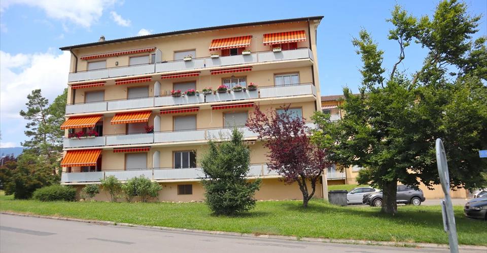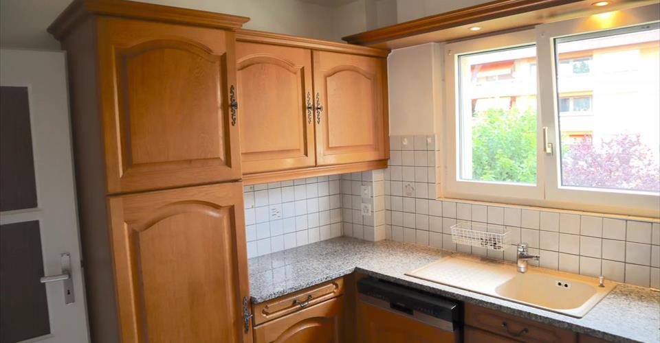 Situé dans un quartier paisible avec une belle vue dégagée, cet appartement de 4.5 pièces (77 m²) offre une belle opportunité de créer un intérieur à votre image. La cuisine, les sols, la peinture et probablement la salle de bain sont à rénover ? l’idéal pour le personnaliser selon vos goûts. Les plus : environnement calme, bonne luminosité, agencement fonctionnel. En sus : Garage/box fermé : CHF 35’000.? Place de parc extérieure : CHF 15’000.? Une belle base pour un projet sur mesure !