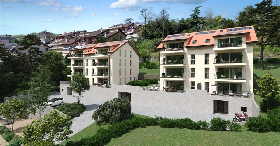 Les Résidences Oran à Orbe Découvrez notre nouveau projet de 16 appartements 4,5 pièces à Orbe ! Nous vous présentons un nouveau projet immobilier composé de 16 appartements modernes de 4,5 pièces, idéalement situés à Orbe. L’architecture soignée et contemporaine de ces logements s’intègre parfaitement dans un environnement calme et verdoyant, tout en étant à proximité du centre-ville, vous offrant ainsi tranquillité et commodités à portée de main. Des espaces de vie spacieux et lumineux Chaque appartement bénéficie de généreuses surfaces habitables, vous garantissant confort et bien-être. Vous pourrez profiter d’une terrasse ou d’un balcon privatif pour savourer l’ensoleillement et la vue sur la nature environnante. Des finitions personnalisables Les finitions de ces logements sont modulables selon vos envies. Vous aurez la possibilité de choisir les matériaux et les couleurs pour créer un intérieur qui vous ressemble. Efficacité énergétique et confort Les appartements répondent aux normes énergétiques les plus récentes et sont équipés d’un système de chauffage gérothermique, garantissant des économies d’énergie et un confort thermique optimal tout au long de l’année. Praticité et stationnement facilité Un garage souterrain de 21 places (Fr. 30’000.-/unité en sus) et 3 places de parc extérieures (Fr. 7’500.-/unité en sus) sont disponibles. Un parking à vélo est également prévu pour les cyclistes. Venez découvrir votre futur chez-vous ! Ce projet offre une occasion unique de vivre dans un cadre de vie agréable et moderne, avec des logements pensés pour votre confort quotidien. Pour plus d’informations, visitez notre site web : www.residences-oran.ch