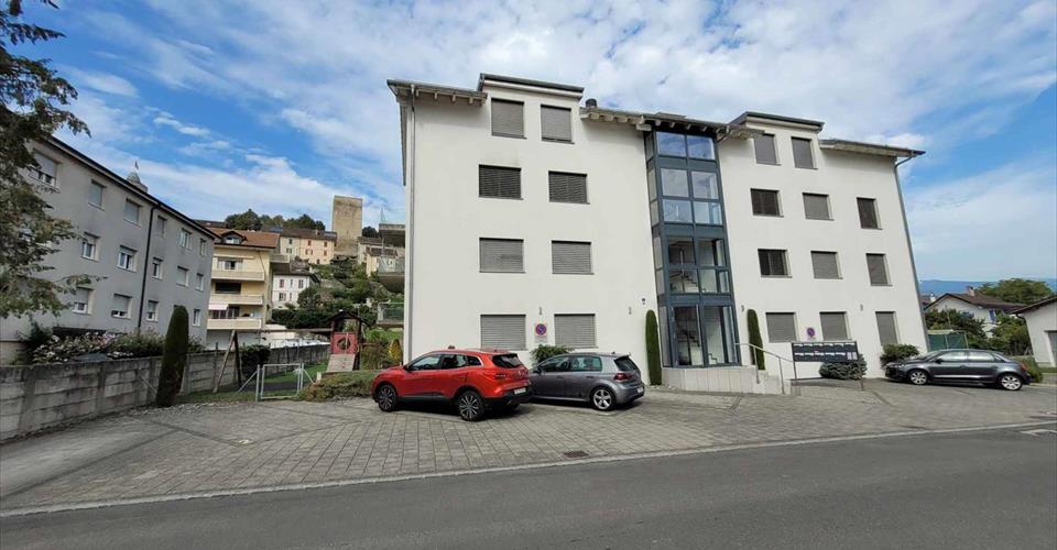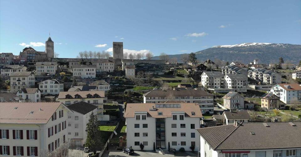 Charmant appartement de 4½ pièces au 1er étage, situé au sein d’une petite PPE de 11 appartements, se composant comme suit: – un hall d’entrée avec armoires murales – une belle cuisine entièrement agencée, avec îlot central, ouverte sur le séjour – un séjour avec coin à manger et accès au balcon – 3 chambres – une salle de bains/WC – une salle de douche/WC avec colonne de lave et sèche-linge – un grand balcon d’angle (~ 16 m²) orienté ouest Ce bien dispose également d’une grande cave au rez-de-chaussée inférieur. Une place de parc extérieure (à CHF 12’500.- en sus du prix de vente affiché) ainsi qu’un garage-box (à CHF 50’000.- en sus du prix de vente affiché) viennent compléter idéalement ce bien. Cet appartement, de bon standing, est vendu loué. Il dispose d’un dégagement idéal avec une splendide vue sur le temple d’Orbe et la Tour Ronde de l’ancien château. Une zone extérieure avec une petite place de jeux est à disposition des résidents de la PPE. Sa situation centralisée (à deux pas du centre-ville et du parc St-Claude), calme et ensoleillée en fait un endroit agréable à vivre pour ses locataires. N’hésitez pas à nous contacter sans plus attendre pour plus d’informations sur ce charmant bien et/ou organiser une visite sur place ! Demandez-nous la brochure de vente de ce bien.