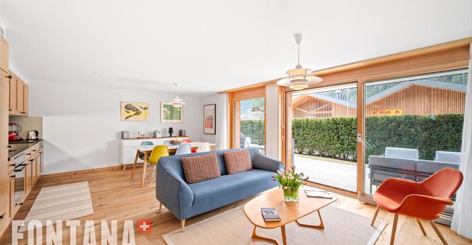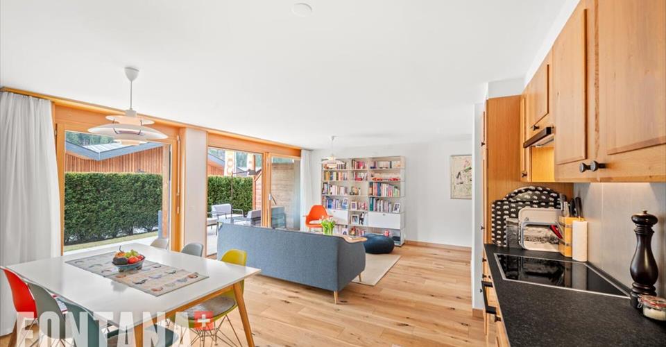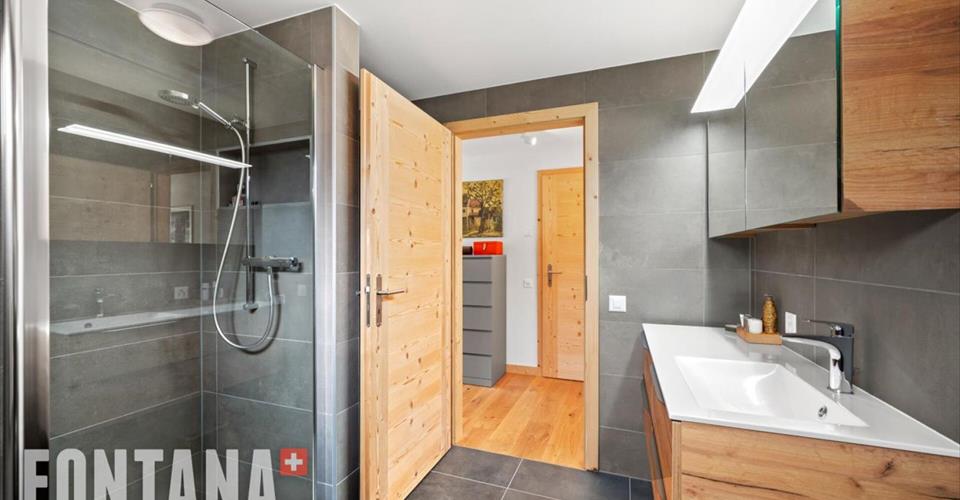 Situé au rez-de-chaussée du Chalet A de la Résidence Mon Abri aux Diablerets, l’appartement A01 de 4,5 pièces, est idéal pour des vacances en famille, comme résidence secondaire ou principale. Offrant une surface habitable de 92 m², il bénéficie d’un emplacement privilégié, à seulement cinq minutes à pied de la gare des Diablerets et juste en face du magasin COOP, à l’entrée du village. Entièrement rénové en 2023, ce logement lumineux propose un agencement fonctionnel comprenant un hall d’entrée avec rangements, une cuisine ouverte entièrement équipée, un coin repas, un salon, deux chambres, une salle de bain ainsi qu’une suite parentale avec salle de douche privative. Le mobilier sur mesure de la suite parentale fait partie intégrante de la vente. La terrasse et le jardin, orientés sud et est, offrent une vue dégagée sur le massif des Diablerets et les sommets environnants. Les chambres, situées à l’est, bénéficient d’un environnement calme et agréable, rythmé par le doux murmure du ruisseau voisin. Grâce à un accès direct depuis toutes les pièces de vie, l’intérieur communique harmonieusement avec les généreux espaces extérieurs, du lever au coucher du soleil. La Résidence Mon Abri offre à ses résidents des prestations communes de qualité : salle de fitness, sauna, salle de jeux pour enfants avec baby-foot, carnotzet pour des moments conviviaux, local à skis, ainsi qu’une buanderie commune dans chaque bâtiment. Proche du centre du village et de toutes les commodités, l’appartement permet un accès rapide aux commerces, restaurants et infrastructures touristiques. Deux places de parking intérieures complètent ce bien, dont une équipée d’une borne de recharge pour véhicule électrique. Ce bien rare allie rénovation récente, confort moderne et situation exceptionnelle pour profiter pleinement des plaisirs de la montagne, en toutes saisons. Distribution : Hall d’entrée avec rangements Salle de douche avec vasque et WC Cuisine ouverte entièrement équipée Salle à manger et salon avec accès à la terrasse (orientation sud) Deux chambres avec accès à la terrasse et au jardin (orientation est) Une suite parentale avec salle de douche, vasque et WC, également avec accès à la terrasse et au jardin (orientation est) Buanderie Une cave Une armoire à ski Deux places de parc intérieures Une borne de recharge pour véhicule électrique Ascenseur Accès aux personnes à mobilité réduite Disponibilité à convenir. Appartement vendu non meublé.