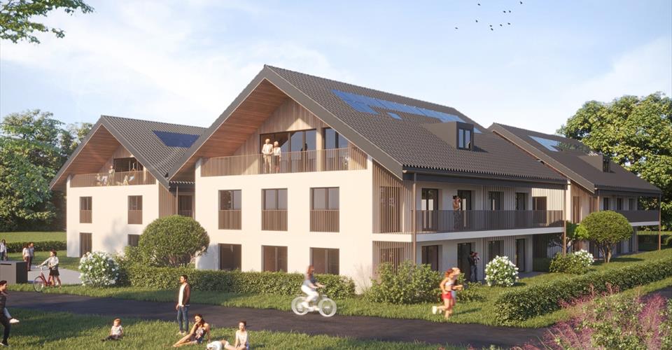 Nichée au coeur du village de Orny, La Bergerie tire son nom de l’ancienne exploitation du site. Entre la rivière et les fermes villageoises qui caractérisent les lieux, ce nouveau projet se compose de 3 bâtiments implantés de telle sorte à créer des espaces conviviaux et intimistes. Chaque bâtiment accueillera 6 appartements, avec des typologies allant du 2.5 aux 4.5 pièces. Répartis sur trois étages uniquement, les immeubles se caractérisent comme à taille humaine et disposent d’une atmosphère familiale et reposante. Un agréable espace vert commun agrémenté d’une place de jeu favorisent les échanges entre voisins. Tous les logements profitent également d’un espace extérieur, une terrasse avec jardin ou un balcon, permettant de profiter du calme de l’environnement. D’un point de vue architectural, La Bergerie s’intègre harmonieusement dans son nouveau quartier, grâce à des façades boisées, évoquant ainsi la nature environnante. Un parking souterrain d’une capacité de 14 places permet un accès direct au sous-sol de chaque bâtiment, qui accueille les caves, un local vélos, ainsi qu’une buanderie commune pour 6 appartements. Un vélo électrique est offert à l’achat d’un logement de 4.5 pièces. Place de parc intérieure en sus CHF 30’000.- l’unité. Découvrez le site dédié au projet : https://ppe-labergerie.ch/