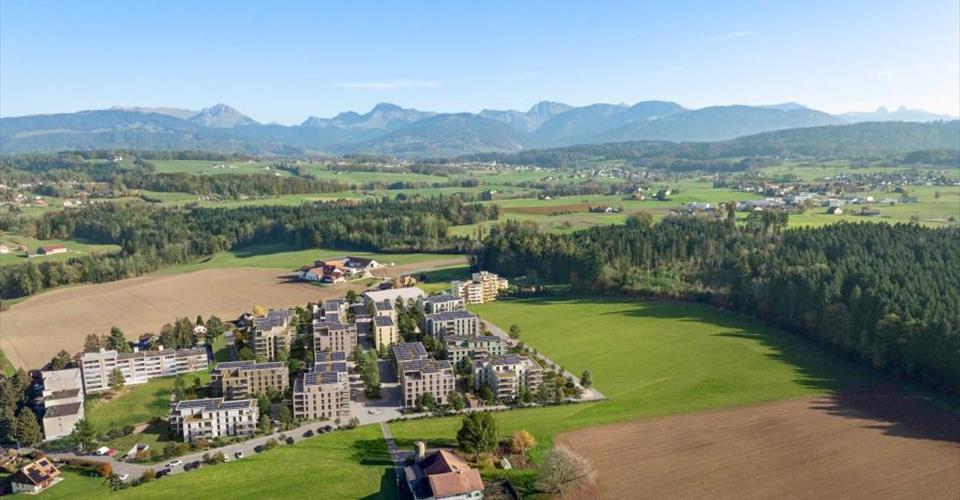 PROXIMMO, VOTRE AGENCE IMMOBILIÈRE, VOUS PRÉSENTE: “LA CLÉ DES CHAMPS”, PROJET EMBLÉMATIQUE AUX PRESTATIONS UNIQUES ! Découvrez “La Clé des Champs”, un nouveau quartier harmonieux, vivant, écologique et pratique qui redéfinit l’art de vivre. Parfaitement situé à 15-20 minutes des centres de Lausanne et Vevey, ce superbe projet immobilier propose 53 appartements à la vente (Phase 1). Qualitatifs et fonctionnels, de typologies variées, à deux pas de la gare CFF et jouissant d’un cadre exceptionnel pour la région, ces biens sauront répondre aux attentes de tous les profils d’acheteurs. Ce nouveau quartier situé à quelques minutes des centres urbains se marie parfaitement avec son environnement direct bucolique et verdoyant, synonyme d’équilibre entre vie active et vie de famille. Il vous propose de nombreux services tels que garderie, petite épicerie, Publibike, EMS, Mobility, parcs à vélos, local multifonctionnel, atelier de réparation de vélos, espaces pour télétravail, jardins communautaires, salle de sport, (etc.), offrant ainsi une qualité de vie hors du commun pour les futurs habitants. Doublement labellisé (Minergie / SNBS Quartier), ce projet répond à des critères de qualité, de sécurité et de confort des plus exigeants. Il a été conçu en prévoyant une approche globale sur le fonctionnement du quotidien des habitants, tout en considérant les différents enjeux de la durabilité. Les appartements ont été parfaitement configurés et intelligemment réfléchis jusque dans les moindres détails pour optimiser les espaces de vie mis en valeur par une luminosité naturelle généreuse, notamment grâce aux belles ouvertures vers l’extérieur. Les distributions intérieures sont fonctionnelles et optimales, offrant de vraies pièces agréables à vivre en toute saison. Ce projet donne également la possibilité aux futurs propriétaires des lieux de personnaliser leur nouveau logement et d’en choisir les finitions. La région offre quant à elle de nombreux avantages. Le cadre naturel des environs, entre plaines et montagnes, conjugué aux commodités urbaines facilement accessibles et à proximité directe de la gare CFF, permet de répondre aux besoins de tous, et de proposer une offre complète. Les écoles sont à 3 min, et les transports scolaires organisés. Oron est également à 3 min, où se trouvent plusieurs centres commerciaux, restaurants, lieux de loisirs, médecins, banques, etc. Les villes de Lausanne et Vevey sont accessibles en moins de 20 min, que ce soit en voiture ou en train. Cette promotion offre donc une variété de solutions, tant pour les familles que pour les seniors, et permettra aux habitants d’y voir leur foyer et leur quotidien évoluer au fil des ans dans un environnement agréable. En outre, elle constitue une très bonne opportunité d’investissement en termes d’achat, notamment grâce à des prix accessibles et à une conception assurant une pérennité de la valeur sur le long terme. … Et si vous faisiez partie de cette belle aventure ? Lots en vente: 2.5 pièces à partir de Frs. 435’000.– 3.5 pièces à partir de Frs. 590’000.– 4.5 pièces à partir de Frs. 740’000.– 5.5 pièces à partir de Frs. 890’000.– Lancement du chantier cet automne (Phase 1). Notre avis : – Un projet unique, à forte valeur ajoutée – Bâtiments labellisés, écologiques et efficients pour un minimum de frais – Mobilité douce et sécurité, tous les véhicules en souterrain – Chauffage par PAC géothermie avec géocooling en été – 200 arbres plantés, vergers communautaires, aires de repos et de jeux – Quartier disposant de commodités pour les habitants (garderie, fitness, coworking, espaces séniors, café, épicerie, etc.) – Gare CFF à pieds permettant de rejoindre Lausanne en 15 min. – Prix de vente attractifs, prise de valeur à court terme, facile à louer, investissement sécurisé – Garanties de construction, dur