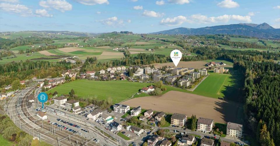 PROXIMMO, VOTRE AGENCE IMMOBILIÈRE, VOUS PRÉSENTE: “LA CLÉ DES CHAMPS”, PROJET EMBLÉMATIQUE AUX PRESTATIONS UNIQUES ! Découvrez “La Clé des Champs”, un nouveau quartier harmonieux, vivant, écologique et pratique qui redéfinit l’art de vivre. Parfaitement situé à 15-20 minutes des centres de Lausanne et Vevey, ce superbe projet immobilier propose 53 appartements à la vente (Phase 1). Qualitatifs et fonctionnels, de typologies variées, à deux pas de la gare CFF et jouissant d’un cadre exceptionnel pour la région, ces biens sauront répondre aux attentes de tous les profils d’acheteurs. Ce nouveau quartier situé à quelques minutes des centres urbains se marie parfaitement avec son environnement direct bucolique et verdoyant, synonyme d’équilibre entre vie active et vie de famille. Il vous propose de nombreux services tels que garderie, petite épicerie, Publibike, EMS, Mobility, parcs à vélos, local multifonctionnel, atelier de réparation de vélos, espaces pour télétravail, jardins communautaires, salle de sport, (etc.), offrant ainsi une qualité de vie hors du commun pour les futurs habitants. Doublement labellisé (Minergie / SNBS Quartier), ce projet répond à des critères de qualité, de sécurité et de confort des plus exigeants. Il a été conçu en prévoyant une approche globale sur le fonctionnement du quotidien des habitants, tout en considérant les différents enjeux de la durabilité. Les appartements ont été parfaitement configurés et intelligemment réfléchis jusque dans les moindres détails pour optimiser les espaces de vie mis en valeur par une luminosité naturelle généreuse, notamment grâce aux belles ouvertures vers l’extérieur. Les distributions intérieures sont fonctionnelles et optimales, offrant de vraies pièces agréables à vivre en toute saison. Ce projet donne également la possibilité aux futurs propriétaires des lieux de personnaliser leur nouveau logement et d’en choisir les finitions. La région offre quant à elle de nombreux avantages. Le cadre naturel des environs, entre plaines et montagnes, conjugué aux commodités urbaines facilement accessibles et à proximité directe de la gare CFF, permet de répondre aux besoins de tous, et de proposer une offre complète. Les écoles sont à 3 min, et les transports scolaires organisés. Oron est également à 3 min, où se trouvent plusieurs centres commerciaux, restaurants, lieux de loisirs, médecins, banques, etc. Les villes de Lausanne et Vevey sont accessibles en moins de 20 min, que ce soit en voiture ou en train. Cette promotion offre donc une variété de solutions, tant pour les familles que pour les seniors, et permettra aux habitants d’y voir leur foyer et leur quotidien évoluer au fil des ans dans un environnement agréable. En outre, elle constitue une très bonne opportunité d’investissement en termes d’achat, notamment grâce à des prix accessibles et à une conception assurant une pérennité de la valeur sur le long terme. … Et si vous faisiez partie de cette belle aventure ? Lots en vente: 2.5 pièces à partir de Frs. 435’000.– 3.5 pièces à partir de Frs. 590’000.– 4.5 pièces à partir de Frs. 740’000.– 5.5 pièces à partir de Frs. 890’000.– Lancement du chantier cet automne (Phase 1). Notre avis : – Un projet unique, à forte valeur ajoutée – Bâtiments labellisés, écologiques et efficients pour un minimum de frais – Mobilité douce et sécurité, tous les véhicules en souterrain – Chauffage par PAC géothermie avec géocooling en été – 200 arbres plantés, vergers communautaires, aires de repos et de jeux – Quartier disposant de commodités pour les habitants (garderie, fitness, coworking, espaces séniors, café, épicerie, etc.) – Gare CFF à pieds permettant de rejoindre Lausanne en 15 min. – Prix de vente attractifs, prise de valeur à court terme, facile à louer, investissement sécurisé – Garanties de construction, dur