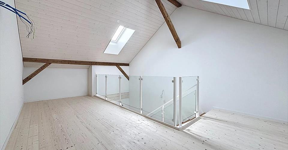 Découvrez ce superbe appartement neuf en duplex de 4.5 pièces, véritable bijou de charme ! Avec une généreuse surface habitable d’environ 128m², cet appartement est agencé de manière optimale : Au premier étage : Un vaste espace de vie d’environ 58m², idéalement structuré autour d’une cuisine ouverte, parfaite pour les moments conviviaux. Un joli balcon d’environ 8m², propice à la détente. Au deuxième étage : Trois spacieuses chambres à coucher, dont une suite parentale avec sa salle de douches privative. Une salle de bains commune moderne avec emplacement pour colonne de lavage. Une belle mezzanine d’environ 50m² ouverte, offrant une perspective aérienne et lumineuse. L’immeuble, historique, a été entièrement rénové pour ne conserver que les murs extérieurs et les poutres apparentes, alliant ainsi le charme du passé aux standards modernes (géothermie, panneaux photovoltaïques, triple vitrage, etc…). L’appartement bénéficie de finitions de qualité et épurées qui s’harmonisent parfaitement avec l’ensemble. De plus, une cave au rez-de-chaussée complète ce bien. Des places de parking extérieures sont disponibles en supplément pour davantage de confort. Idéalement situé dans un environnement paisible, cet appartement est parfait pour ceux qui recherchent une harmonie entre sérénité et modernité. Ne manquez pas cette opportunité unique à Penthalaz : visitez-le dès aujourd’hui ! Deux autres appartements disponibles 3.5 pièces d’environ 102m² habitables CHF 865’000.- 3.5 pièces d’environ 83m² habitables CHF 740’000.-