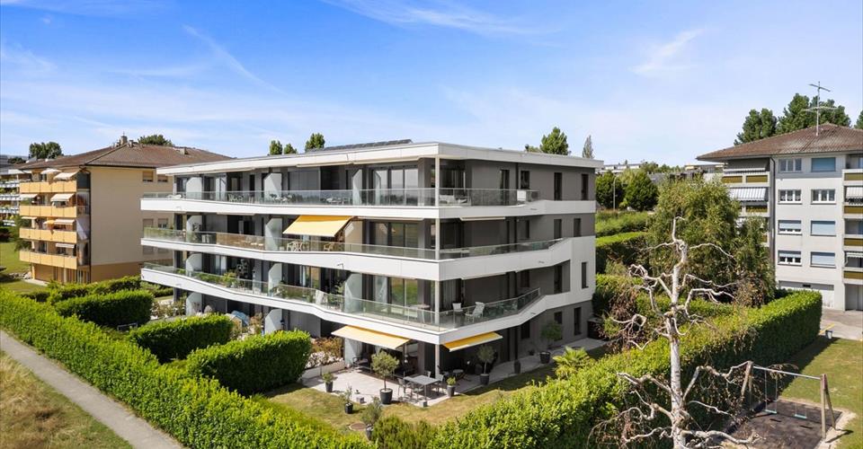Préverenges 1028 Préverenges se situe dans le district de Morges, dans le Canton de Vaud. La population dans la commune politique de Préverenges a varié au cours des cinq dernières années de -0,3% en moyenne par an, s’élevant à 5 215 habitants (Etat le 31 déc. 2023). Le taux d’imposition est de 13,6% (canton: 13,8%). Durant les cinq dernières années, la construction de logements dans la commune s’est élevée à 0,3% en moyenne par an, alors que le taux de logements vacants actuels est de 0,4% (Etat le 1er juin 2024). Les prix immobiliers ont varié de +26,0% au cours des cinq dernières années (canton: +20,6%). Bel appartement de 4.5 pièces 138m2 pondérés Descriptif – Lot n°16 Situé au 3? étage d’une résidence de standing, ce magnifique appartement de 4.5 pièces offre une surface habitable de 123 m², prolongée par un spacieux balcon de 26.8 m², idéalement exposé sud / sud-ouest pour profiter d’un ensoleillement optimal tout au long de la journée. L’appartement se compose de : Un vaste séjour lumineux de près de 40 m², ouvrant directement sur le balcon, Trois chambres, dont une suite parentale avec salle d’eau privative, Une seconde salle d’eau indépendante, Un WC séparé, Une cuisine intégralement équipée avec crédence en granit. Ce bien séduit par ses volumes généreux, sa luminosité exceptionnelle, et une exposition idéale offrant un cadre de vie à la fois confortable et agréable. Idéal pour une famille ou un couple en quête d’espace et de qualité de vie. 123 m2 + pondération balcon = 138 m2 vente PPE En sus du prix, 1 place intérieure à CHF 40’000.00 + 1 place extérieure à CHF 20’000.00 Proposition de financement hors places de parc en annexe Charges PPE 1450.-/trimestre y compris fond rénovation