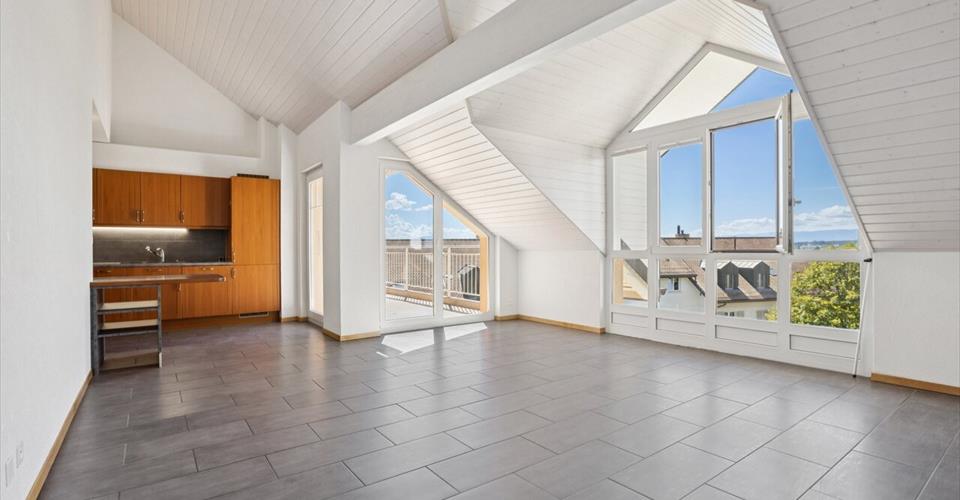 Situé dans un quartier calme et résidentiel, entouré de verdure et voisin d’un domaine viticole, ce superbe appartement de 4.5 pièces offre un cadre de vie privilégié à seulement quelques minutes de Lausanne. Occupant le dernier étage d’un petit immeuble, il dispose d’une généreuse surface pondérée de 141 m², comprenant une spacieuse mezzanine d’environ 50 m², idéale pour un bureau, un espace détente ou une chambre supplémentaire selon vos envies. Le vaste séjour, sublimé par un plafond cathédrale et une cuisine ouverte entièrement équipée, profite d’une luminosité exceptionnelle grâce aux grandes baies vitrées orientées plein sud. Prolongé par un balcon ensoleillé de 18 m², il dévoile une vue imprenable sur le lac Léman, la baie de Morges et les Alpes. L’espace nuit se compose de trois chambres, dont une suite parentale confortable, ainsi que de deux salles d’eau. Deux places de parc en sous-sol, une cave de 11 m² et l’accès à un magnifique jardin commun complètent ce bien rare, alliant volumes, lumière et sérénité, à deux pas du lac et des commodités. Un véritable coup de cœur pour les amateurs de calme, d’espace et de panoramas d’exception.