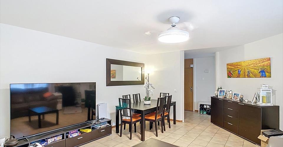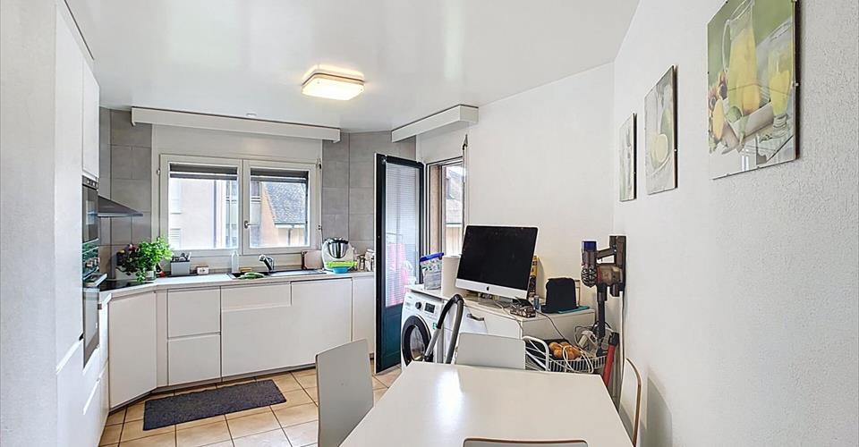 Idéal pour une famille Dans un environnement calme et verdoyant à quelques encablures du lac, charmant et lumineux 4,5 pièces situé au 1er étage. Ce logement a été partiellement rénové en 2017 et jouit d’une surface d’environ 97,5 m2 + une loggia et un balcon dans 104 m2 pondérés environ. Il est distribué comme suit : d’un grand hall d’entrée d’une cuisine habitable agencée d’un salon avec carrelage et donnant sur une loggia 1 WC visiteurs séparé une salle de douche une salle de bains 3 chambres à coucher dont 2 donnant sur un balcon Dans le salon, il y aurait la possibilité de mettre une cheminée car un canal est existant mais n’a jamais été utilisé. Une cave de 8 m2 ainsi que 2 places de parc intérieures en enfilades en sus du prix de vente (+ 50’000.- Frs) complètent ce bien immobilier. Idéal pour un investisseur, ce logement est actuellement loué à Frs 2’950.-/ mois soit Frs 35’400.-/an. Vues en 360 degrés, voir liens. Pour toute question et une visite de cet appartement, Didier Decker se tient à votre disposition