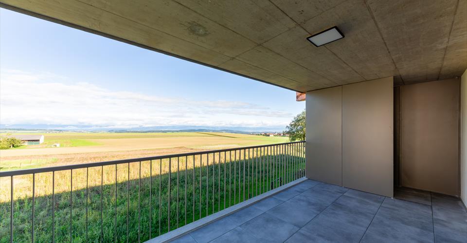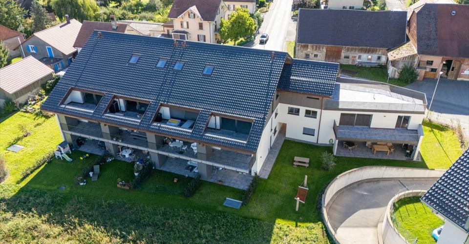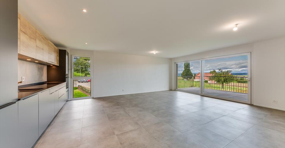 Route de Lucens 2, 1682 Prévonloup Située dans la Broye vaudoise à la frontière du canton de Fribourg, la commune de Prévonloup offre un cadre privilégié en pleine nature avec une vue imprenable sur le Moléson et les sommets des Alpes d’un côté, ainsi que sur le Jura et la région de la Basse-Broye jusqu’au lac de Neuchâtel. La promotion “Résidence du couchant” est composée de 14 appartements en PPE et se trouve à une distance égale de Lausanne, Fribourg et Bulle. Situé au 1er étage de l’immeuble ce logement moderne et lumineux offre une surface habitable de 110 m² et dispose d’une terrasse de 18 m². Détails : – Hall d’entrée avec armoires murales – Cuisine ouverte avec espace salle à manger – Economat – Suite parentale – salle de bains avec douche – 2e salle de bains équipée d’une baignoire – Grande baie vitrée – Cave – Parking souterrain – Ascenseur Technique : – Chauffage par pompe à chaleur air/eau – Panneaux photovoltaïques Disponibilité : de suite Place de parc extérieure : CHF 15’000.- Place de parc intérieure : CHF 30’000.- Renseignements et visites : Cédric Chappuis www.residence-du-couchant.ch