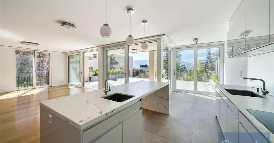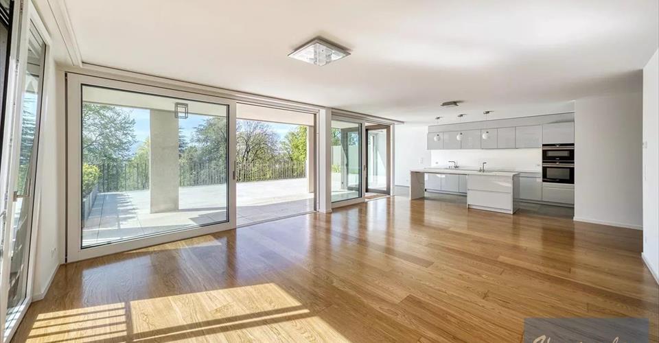 Localisation Dans un quartier résidentiel très calme et très prisé de Pully Sud et à proximité immédiate de l’école privée CHAMPITTET et de son terrain de jeux et de tennis accessibles à tous, à quelques pas du lac, du parc Denantou, du collège de Chamblandes, des commerces, du bus, de la gare de Lausanne… Les bus 8, 21, 24 et 25 sont à proximité immédiate. L’immeuble Récente construction MINERGIE et esthétique de 8 appartements de haut standing. Propriété moderne, joliment arborée et éclairée, avec garage et local a vélos. L’appartement L’appartement est situé au 1er étage (2ème depuis le côté Sud) et bénéficie d’une orientation Sud-Est et d’une vue dégagée et champêtre. L’appartement est traversant Nord – Sud et bénéficie de fenêtres à l’Est également. Il est très lumineux et ses finitions de haut standing en font un lieu très “cosy” et facile à vivre. Sa surface habitable est de 135 m2 + une magnifique terrasse de 70m2 qui permet de profiter d’un bel espace supplémentaire tout au long de l’année et surtout des beaux jours de l’été. Distribution Hall d’entrée avec de nombreuses armoires intégrées Cuisine super équipée des plus beaux matériaux et électro-ménager, ouverte sur salon/salle à manger et la terrasse 3 chambres dont une suite parentale avec sa salle de douche et wc en suite Salle de bain et wc Terrasse de 70m2 au Sud, vue dégagée et champêtre 2 Caves et 2 parcs Buanderie privée Local à vélo Ascenseur L’appartement dispose des équipements suivants Beau parquet en chêne Triple vitrage Stores électriques Terrasse Cuisine équipée Interphone Alarme avec caméras Consultez également nos autres offres ou communiquez-nous votre recherche! https://www.vuesurlac-immo.ch