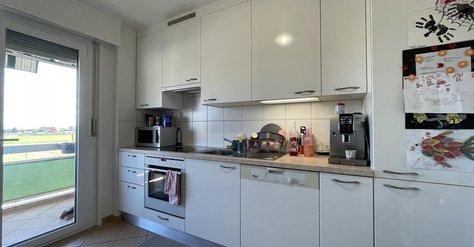 L’appartement se présente comme un 4,5 pièces comprenant un séjour/salle à manger avec accès direct au balcon ainsi qu’une cuisine fermée attenante, également reliée au balcon. L’espace nuit dispose de trois chambres aux dimensions généreuses, d’une salle de bains et d’un WC-visiteurs. Grâce à son orientation sud-ouest, le bien bénéficie d’un excellent ensoleillement. Fenêtres en double vitrage PVC, sols en parquet flottant, (carrelage en cuisine). Enfin, le balcon offre un cadre agréable pour profiter des soirées estivales. L’objet bénéficie également d’un garage-box fermé dans le parking souterrain. (Compris dans le prix). Remarque : L’appartement est actuellement loué.