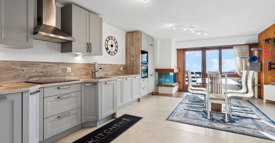 Bienvenue dans cet appartement qui combine confort, espace et vue époustouflante. Vous serez immédiatement séduit par la généreuse pièce de vie, baignée de lumière ou chaque journée commence sous le signe de l’exception. Elle s’ouvre sur une belle terrasse offrant un panorama dégagé, idéal pour profiter de nombreux moments de détente ou d’un apéritif en soirée. La cuisine aménagée, à la fois fonctionnelle et élégante, est prêtre à accueillir vos meilleures inspirations culinaires. Parfaitement pensée, elle permet un espace de travail optimisé tout en restant ouverte sur la pièce de vie, favorisant une ambiance conviviale et familiale. Cet appartement dispose de trois chambres lumineuses, conçues pour le confort et la tranquillité de chacun. Les deux salles de bains ainsi qu’un wc visiteurs faciliteront le quotidien d’une famille. La cave, les deux casiers à ski et la place de parc en sous-sol sont des arguments indéniables de ce bien. Ce 4.5 pièces est une invitation à un art de vie qui allie espace, confort et vue à couper le souffle. Venez le découvrir et laissez vous séduire par cette opportunité unique, o’u chaque détail a été pensé pour offrir une qualité de vie exceptionnelle !