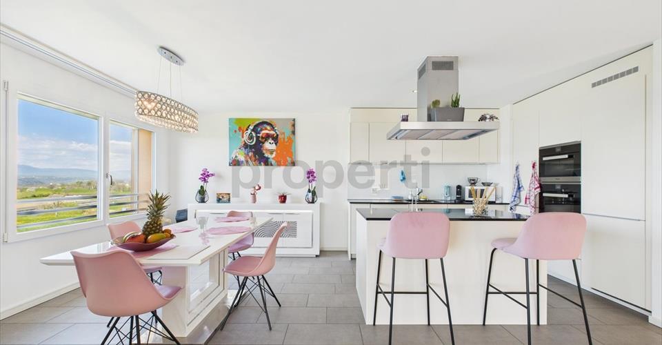 Situé dans un environnement calme et verdoyant, au sein du charmant quartier «/Domaine Plein Soleil/», cet appartement de 4.5 pièces vous séduira par son atmosphère lumineuse, ses volumes généreux et son voisinage agréable. Le séjour spacieux, baigné de lumière naturelle, souvre harmonieusement sur une cuisine moderne et ouverte, équipée déléments de haute qualité suisses (fenêtres, carrelage, mobilier de cuisine, etc.). Trois chambres bien agencées et deux salles de bains modernes garantissent un confort de vie optimal, tandis quun joli balcon de 11.55/m² avec vue dégagée invite à la détente en plein air. Un réduit ainsi quune très grande cave équipée de sa propre machine à laver et sèche-linge complètent lespace de manière fonctionnelle. Un ascenseur facilite laccès à tous les étages, et une place de parc couverte dans le garage souterrain est incluse. Le centre commercial de Crissier se trouve à 3 minutes en voiture. Construite en 2016, cette résidence moderne répond aux normes Minergie et se trouve dans un état irréprochable. Elle se distingue par son confort contemporain, son efficacité énergétique et son ambiance chaleureuse. Lappartement bénéficie dun système de chauffage au sol et dun standard daménagement moderne. Le quartier se caractérise par sa tranquillité et sa proximité immédiate avec des zones de loisirs, ce qui en fait un lieu de vie idéal pour les familles, les couples ou les actifs en quête dun équilibre entre sérénité et proximité urbaine. Ce logement charmant et généreux offre un cadre de vie rare dans la région lausannoise, alliant qualité, praticité et esthétique. Cette offre de properti se distingue par : Appartement lumineux, moderne et spacieux Grand balcon de 11.55/m² avec vue dégagée Trois chambres et deux salles de bains Cuisine ouverte moderne avec équipements suisses haut de gamme Place de parc privée dans le garage souterrain Immeuble avec ascenseur, conforme au standard Minergie Proximité immédiate des commerces, écoles et transports publics Environnement calme et verdoyant dans un quartier recherché Vous êtes intéressé(e) ? Contactez-nous pour un entretien sans engagement ! Mettre soi-même un bien immobilier sur le marché ? Nous vous convaincrons par des conditions équitables et transparentes !