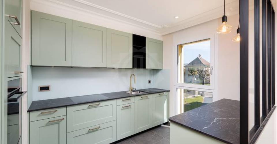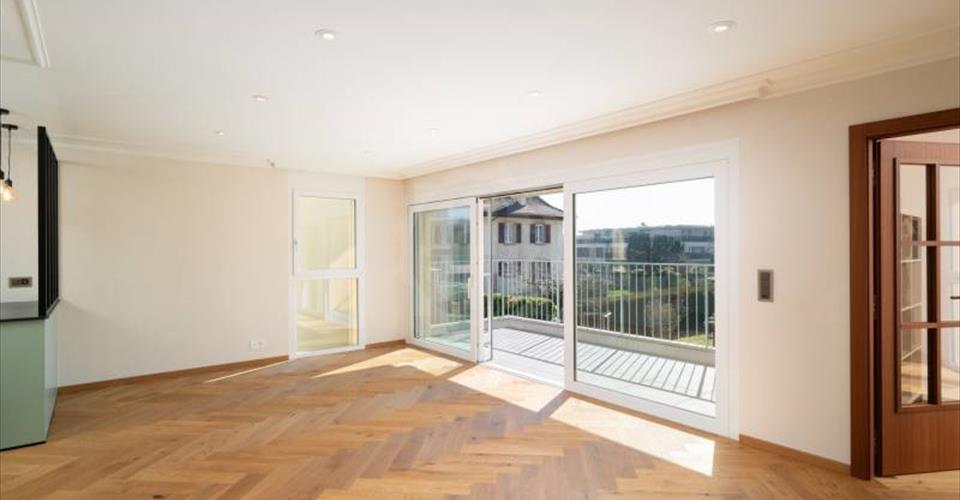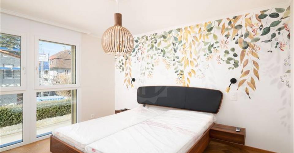 – À 5 minutes du centre-ville – Orientation sud – Exposition plein sud – Bien à un niveau – Au 1er étage – Suite parentale avec dressing et salle de bain – Cuisine équipée ouverte sur séjour – État neuf – Balcon – 1 parking intérieur – Disponibilité immédiate Occupant la totalité du premier étage d’un bâtiment de 3 lots seulement, ce spacieux appartement de 3,5 pièces offre une surface habitable de 89 m². Son emplacement idéal proche du centre-ville tout en étant préservé de toute nuisance saura indéniablement vous séduire. L’espace jour de 38 m², baigné de lumière naturelle, se compose d’un vaste salon et d’une cuisine ouverte. La cuisine est entièrement agencée et équipée avec des appareils de haute qualité et un magnifique plan de travail en dekton. Un balcon de 10 m2 accessible depuis les portes fenêtres du séjour permet de profiter des douces soirées d’été. L’appartement dispose de deux chambres, l’espace parental comprend une grande chambre avec sa salle de bains et douche attenante ainsi qu’un dressing complet, inclus dans le prix de vente. Une deuxième chambre permet l’aménagement d’un bureau ou d’une chambre pour enfant. Un WC visiteurs avec la possibilité d’intégrer une colonne de lavage ou une seconde douche complète parfaitement ce bien. Les finitions soignées apportent un cachet unique : les portes et cadres en acajou, le parquet en chêne massif à bâtons rompus, les arches élégantes et salles de bains en terrazzo sauront ravir les amoureux du détail. Ce bien comprend une grande cave, ainsi qu’une place de parc intérieur (en sus, pour CHF 45’000.-). Vous l’avez compris, ce bien n’attend plus que vous, contactez-moi sans plus attendrepour organiser une visite sur place.