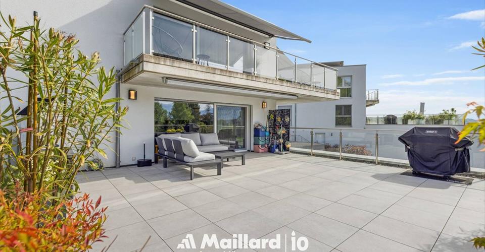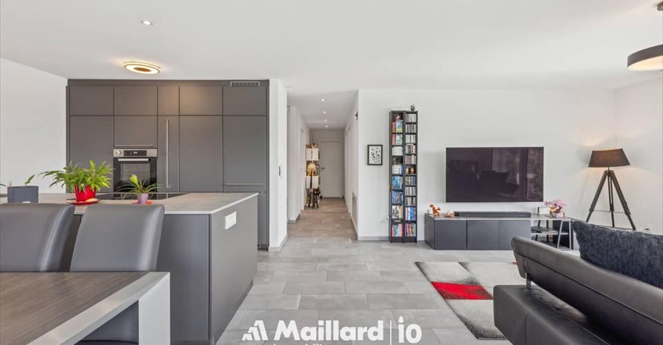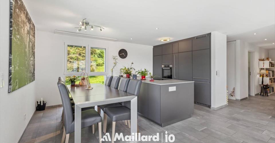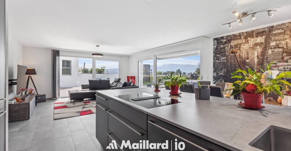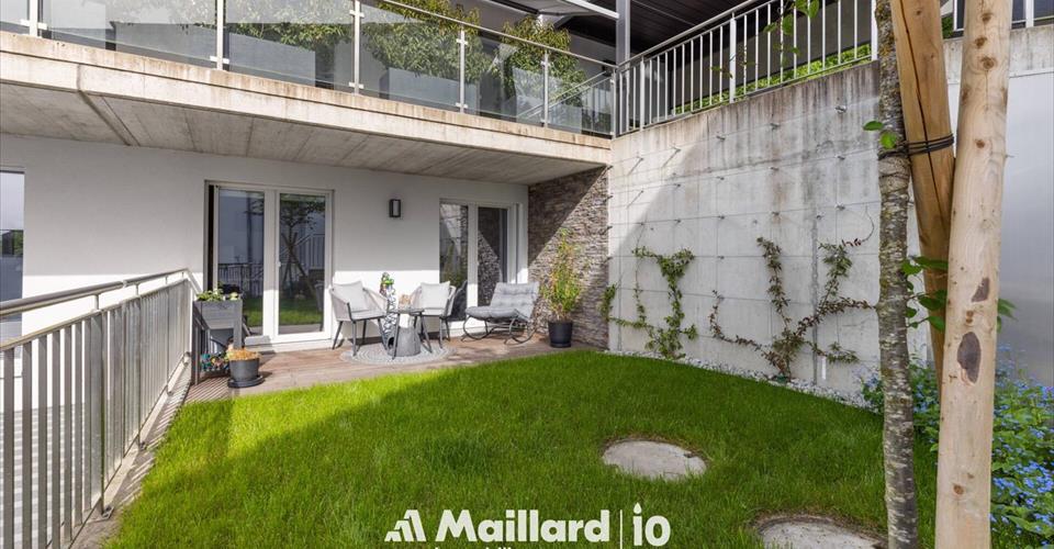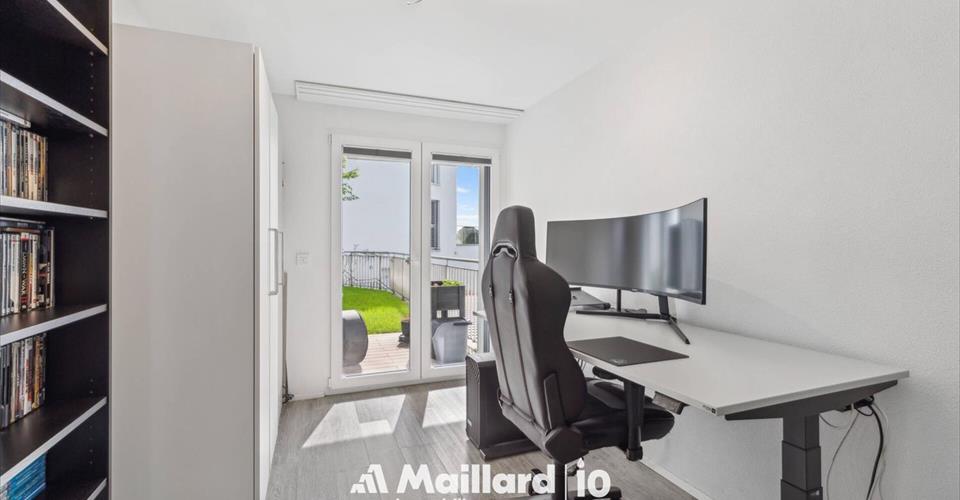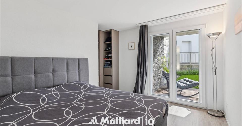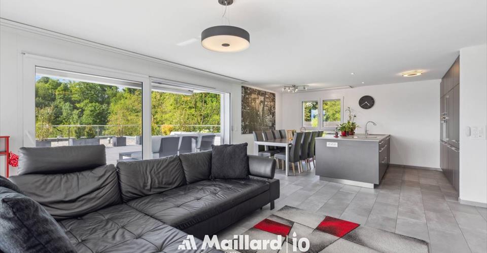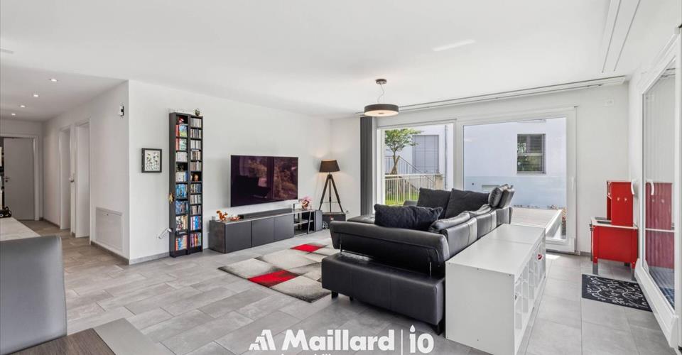 Lumineux 4,5 pièces avec terrasse de 60 m² et jardin. Situé à Yverdon-les-Bains, ce magnifique appartement de 4,5 pièces construit en 2021 bénéficie d’une magnifique vue, dans un quartier résidentiel tout en restant proche des commodités. Ce logement se trouve au 2? étage (sans ascenseur) d’une petite PPE dont l’entrée se fait par un escalier extérieur. L’intérieur se distingue par des finitions modernes et une belle luminosité. Il offre un vaste espace ouvert comprenant le séjour, la salle à manger et la cuisine moderne entièrement équipée. Trois chambres complètent l’ensemble, dont une suite parentale équipée d’une salle de bains privative avec douche et bénéficiant d’un accès direct à un espace extérieur. Le confort est renforcé par un système de domotique permettant la gestion centralisée des stores et de l’éclairage. L’appartement bénéficie d’une vaste terrasse d’environ 60 m², idéalement orientée pour un ensoleillement optimal et offrant une vue dégagée sur le Jura ainsi que de magnifiques couchers de soleil. Cet espace extérieur est prolongé par une surface engazonnée de 30 m², accessible directement depuis deux chambres. Deux places de parc, une couverte et l’autre partiellement, sont attribuées à ce lot en sus du prix de vente (CHF 45’000.-).