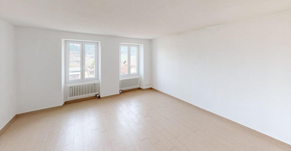 Charmant 4.5 pcs avec jardin privatif Au centre du village de Ballaigues, près proche des commodités, ce charmant appartement de 4.5 pièces est au 1er étage sans ascenseur, moderne d’env. 100m2, dans un petit immeuble de 4appartements très bien entretenu. Il se situe à 7’ de Vallorbe ou 20’ d’Yverdon-Les-Bains ou encore 35’ de Lausanne. Il se compose ainsi : – 1 grande cuisine toute équipée ouverte sur la salle à manger – 1 salon lumineux – 3 chambres dont une avec armoire mural – 1 jardin privatif en contrebas de l’immeuble, avec pergola – 1 WC douche – 1 salle de bain – 1 cave – 1 local de bricolage environ 25m2 – 2 machines dans l’appartement pour sécher et laver le linge – 2 places de parc Le prix est de 2190.- tout compris. Si vous êtes intéressé, nous pouvons organiser une visite sans engagement ; contactez-nous.