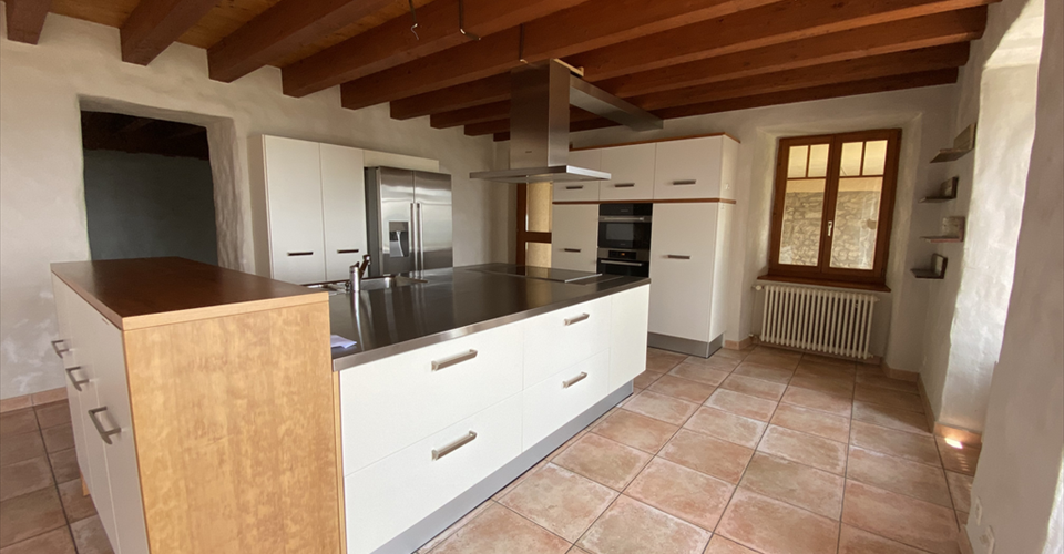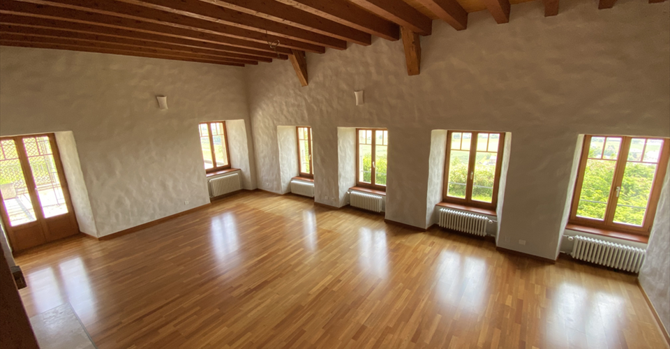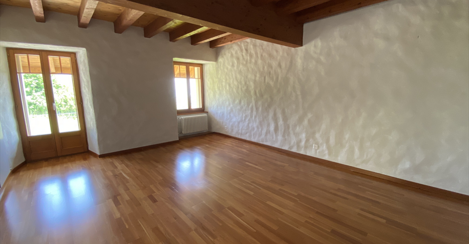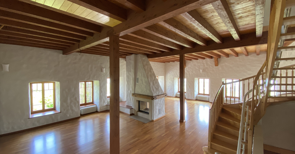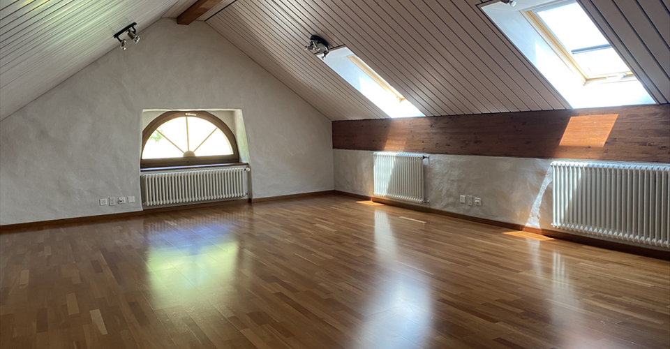 A SAISIR! Magnifique appartement d’environ 400m2 en triplex, dans une ancienne maison comprenant: Au rez inférieur : – Grande cuisine agencée avec coin à manger – Petit salon avec cheminée – Un WC – Une buanderie équipée – Un grand garage Au rez-de-chaussée: – Un grand hall avec armoires – Une chambre avec salle-de-bains/douche, WC séparés et terrasse Au 1er étage: – Vaste séjour avec cheminée Au 2ème étage: – 2 grandes chambres (loft) – un dressing – Salle-de-bains/douche/WC Une très grande terrasse avec vue sur le lac et les alpes, un jardin d’hiver avec four à pizza, une cave, un grand espace vert. Possibilité de stationnement en extérieure. Disponible de suite ou à convenir