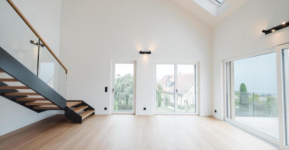 Deux immeubles neufs idéalement situés entre le lac et les vignes, dans un environnement paisible et lumineux. Chaque bâtiment abrite quatre appartements conçus avec attention : de beaux volumes, des matériaux de qualité et des finitions soignées offrent un cadre de vie à la fois confortable et contemporain. Les résidences bénéficient d’un emplacement pratique, à proximité des commodités et des axes de communication. Le lot n°A4 de 4,5 pièces en duplex se décline de la manière suivante : 1er étage : – Un hall d’entrée avec vestiaire; – Une cuisine ouverte sur le séjour; – Une chambre parentale avec une salle de douche/WC; – Un WC visiteurs; – Un balcon avec vue sur le lac; 2ème étage : – Un hall avec accès depuis l’ascenseur ou par l’escalier intérieur; – Deux chambres; – Une salle de bain/douche et WC; – Une buanderie. Loyer : CHF 4’850.00 Charges : CHF 200.00 Place de parc intérieure : CHF 200.00 Disponibilité de suite Pour tout complément d’information au sujet de ces biens d’exception, n’hésitez pas à contacter notre service location.
