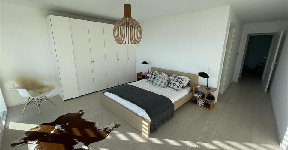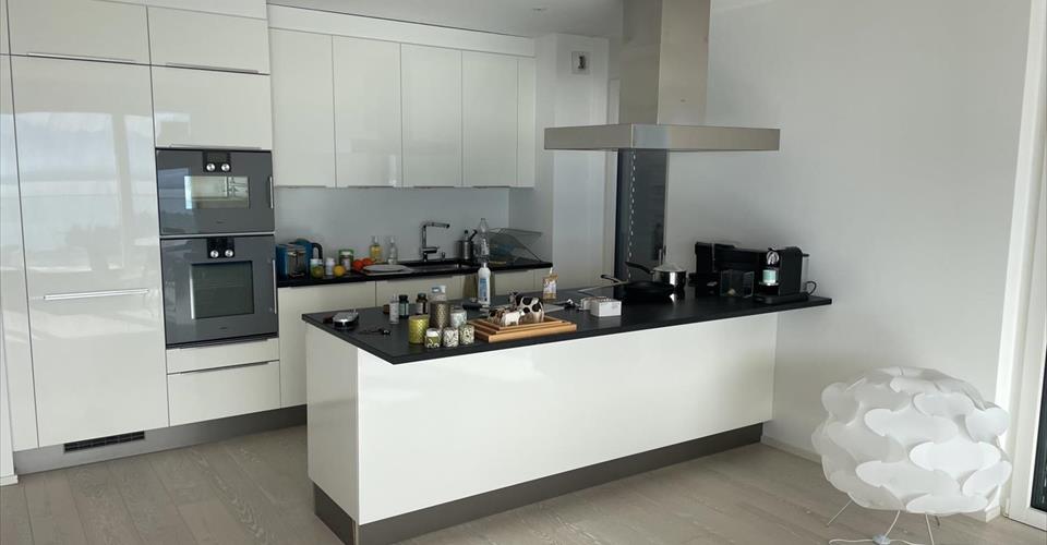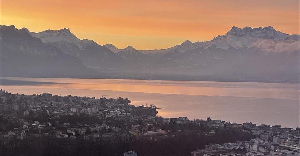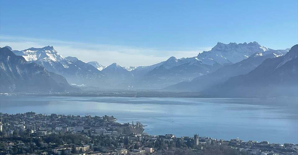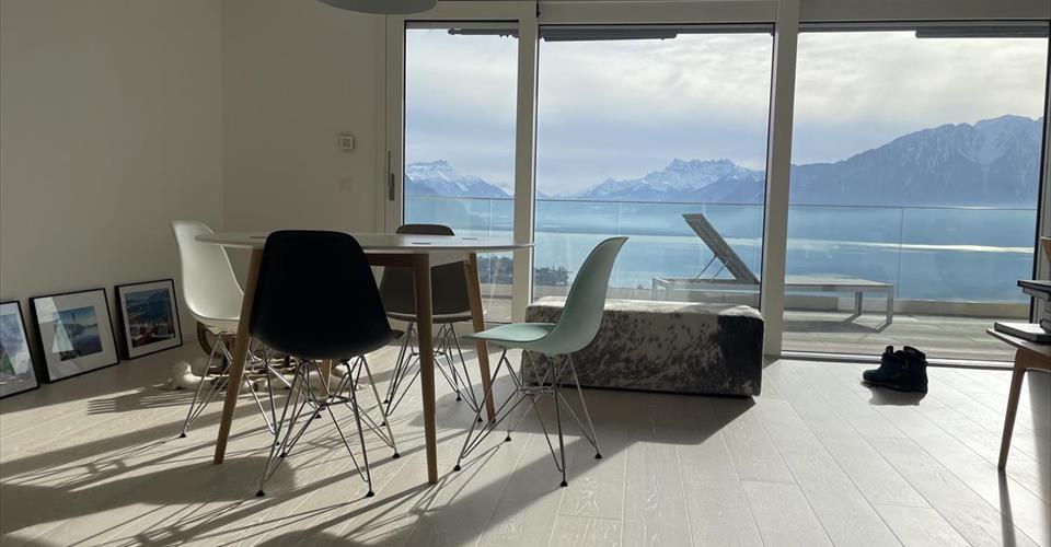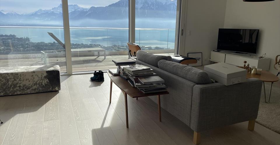 Bénéficiant d’une magnifique situation sans aucune nuisance, cet appartement offre une vue magnifique sur le lac et les Alpes. D’architecture contemporaine, cet appartement est pourvu de large baies vitrées afin de profiter pleinement de la beauté du site avec vue sur le lac et les Alpes. L’appartement a une surface d’environ 122 m2 auquel il faut ajouter une terrasse de 40 m2. Une buanderie privative est incluse dans l’appartement. Toutes les pièces sont orientées plein sud et avec la vue sur le lac et un accès à une terrasse. L’appartement est composé comme suit : – un hall d’entrée avec un vestiaire intégré – une superbe cuisine contemporaine ouverte sur le séjour avec un ilot bar – un grand séjour avec accès direct sur la terrasse – 3 chambres, 3 WC dont un visiteurs, 2 salles d’eau dont une avec baignoire – une grande terrasse – une cave Le choix des matériaux ainsi que la qualité des aménagements intérieurs et extérieurs en font un endroit privilégié, à dix minutes du centre de Vevey. Des bus desservent cette adresse et Vevey peut être joint par funiculaire. L’accès à l’autoroute est rapide, sans nuisances sonores de cette dernière. Charges non comprises : CHF 250.-/mois 2 places de parc intérieures disponibles : CHF 175.-/place/mois