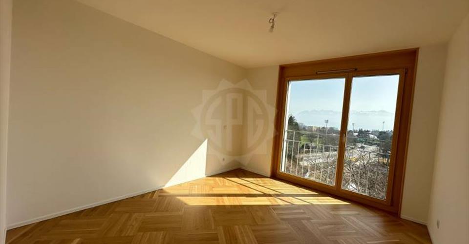 – Vue dégagée – Au 6ème étage – Cuisine équipée ouverte sur séjour – État neuf En attique – dernier lot disponible ! Appartement récent de 4.5 pièces (d’env. 114 m2 + loggia) dans le nouvel écoquartier des Plaines-du-Loup à Lausanne, comprenant: Un hall d’entrée, 3 chambres, une cuisine entièrement agencée et équipée ouverte sur le séjour avec loggia, une salle-de-bains et une salle-de-douche, pré-installation pour la pose d’une colonne de lave et sèche-linge. Dépendances : 1 cave + une grande buanderie commune. Loyer net : CHF 2’900.00 + acompte de charges : CHF 190.00. Possibilité de louer une place de parc intérieure en sus du loyer. Disponibilité : de suite ou à convenir. En cas d’intérêt pour une visite, notre service de locations résidentielles est à votre disposition