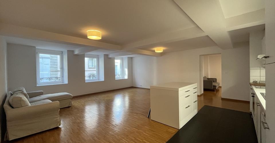 Nous proposons à la location un appartement spacieux de 4,5 pièces, situé au 1er étage d’un immeuble calme et bien entretenu, en plein centre-ville, à proximité immédiate des commodités et des transports publics. Caractéristiques : Appartement en très bon état, cuisine équipée moderne et fonctionnelle, deux sanitaires, trois chambres à coucher lumineuses. Cet appartement allie confort et praticité, idéal pour une famille ou des personnes souhaitant profiter d’un cadre de vie citadin tout en bénéficiant de la tranquillité d’un immeuble soigné. Situation idéale : proche des commerces, écoles, restaurants et transports publics.