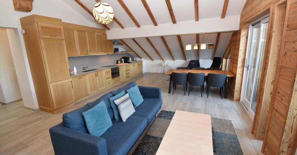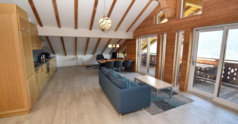 Ce somptueux appartement de 107m2, se situe dans les combles d’un magnifique chalet. Il se compose d’une élégante cuisine ouverte sur un grand salon, d’un balcon avec une vue complètement dégagée, de deux chambres, d’une salle de bain et d’un espace cosy utilisable en bureau ou en chambre.