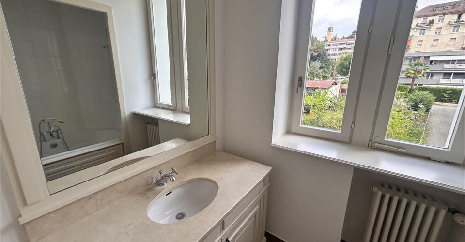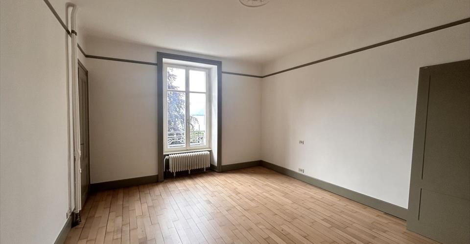 Spacieux appartement de type Haussmannien, avec vue lac ! Cette propriété de caractère est située sur la commune de Clarens, à deux pas du lac et proche de toutes les commodités. Logé au deuxième étage du somptueux immeuble “Le Royal”, cet appartement de charme rénové et parfaitement équipé présente un état d’entretien exemplaire et une distribution confortable. Son balcon tourné face au lac apporte la touche finale à cet objet d’exception. L’appartement est composé de la manière suivante : Hall d’entrée Cuisine entièrement équipée avec coin à manger Spacieux séjour avec cheminée donnant accès au balcon 2 chambres à coucher avec armoires murales Salle de bains WC séparé 1 chambre parentale avec armoires murales et salle de bains/wc attenante Connexion pour colonne de lavage Annexes : Fabuleux carnotzet à disposition sur demande Cave Buanderie commune Place de parc extérieure CHF 150.00 Charage en forfait CHF 600.00 Loyer brut : CHF 5’700.00 Possibilité de louer un garage à CHF 300.00