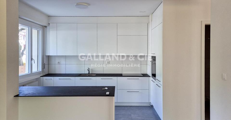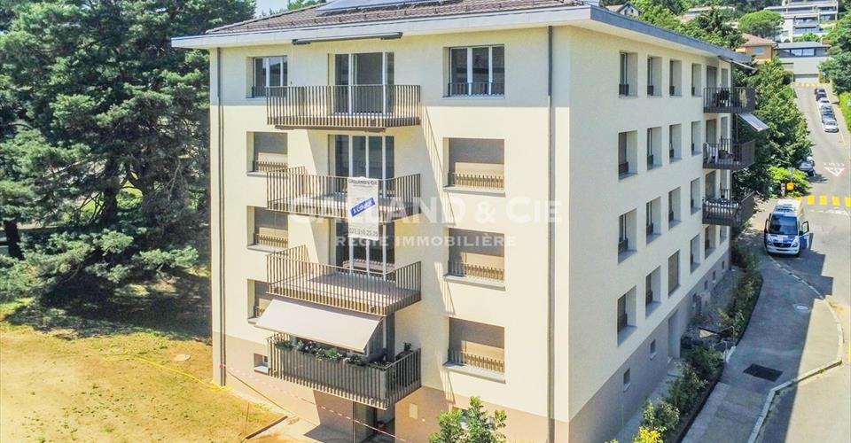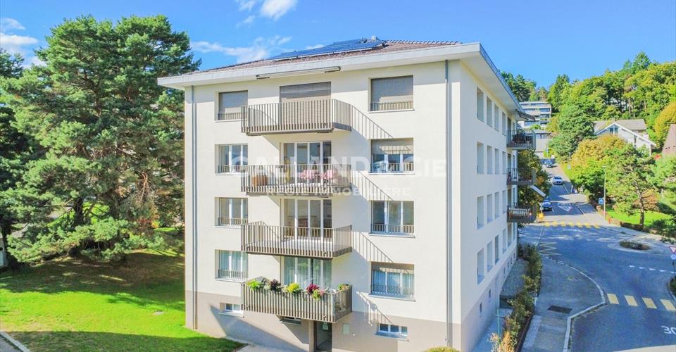 Cet immeuble entièrement rénové avec ascenseur est situé dans les hauts de Pully. Le cadre de vie est calme et verdoyant. Vous profiterez de la proximité du centre ville et de ses commerces à 5 minutes à pied ainsi que des transports en commun, tel que le bus n° 7 pour vous rendre à Lausanne. Bel appartement de 4.5 pièces au 1er étage est composé comme suit : – un grand séjour avec son balcon attenant, – une cuisine spacieuse entièrement équipée et agencée pour vos recettes préférées, – une salle d’eau / WC, – une salle de bain / WC, – trois belles chambres à coucher, De plus, une cave complète ce bien. Un garage box est disponible à CHF 100.00/mois