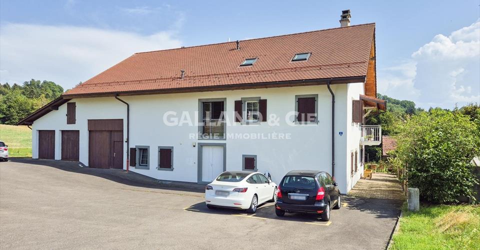 Situé dans une charmante ferme rénovée de comprenant deux appartements. Une ambiance champêtre et une vue dégagée vous est offerte. Vous serez à 10 minutes en voiture du centre de Lausanne et ses commerces. Cet appartement de 4.5 pièces au rez-de-chaussée se dispose comme suit : – un hall d’entrée, – un séjour lumineux et cocooning avec jardin privatif, – trois belles chambres à coucher, – une cuisine entièrement agencée avec un lave-vaisselle, – une salle de bains/WC, – deux salles de douche/WC et un WC séparé, Une cave est à disposition ainsi qu’un garage à CHF 150.-/mois et deux places de parc extérieures incluses.