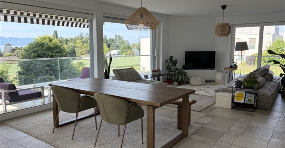 Idéalement situé dans un quartier calme et résidentiel, entouré d’espace vert et à deux pas du bord du lac. A proximité des toutes les commodités, ce lumineux appartement de standing saura vous séduire avec sa surface d’environ 140m2 sur l’étage entier et son balcon-terrasse offrant une magnifique vue sur le lac et les montagnes. Il dispose de 3 chambres à coucher avec salle de bains et douche traversante, une cuisine moderne agencée ouverte sur le séjour, un jardin d’hiver ainsi qu’un WC visiteurs et une colonne de lavage est présente dans le logement. Il dispose également de deux place de parc intérieures comprises dans le loyer. Le taux d’imposition à Saint-Sulpice est le taux le plus favorable du Canton de Vaud et le bord du lac se situe à 10 minutes à pied.