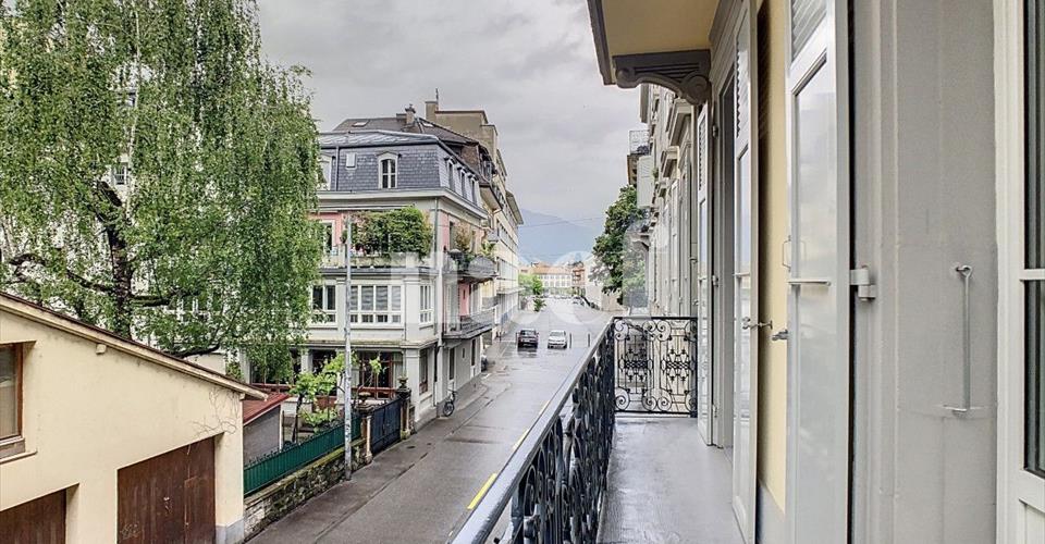 A Vevey, à deux pas du lac, cet appartement de 4.5 pièces profite d’une surface de 120 m2. Au premier étage d’un immeuble de caractère, il se compose de la manière suivante: Un couloir de distribution, une cuisine aménagée et équipée avec espace salle à manger, un salon séjour. L’appartement compte par ailleurs trois chambres à coucher et une salle de bains. L’appartement est disponible de suite. Loyer Frs 2’100.- + Frs 350.- de charges.