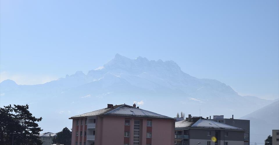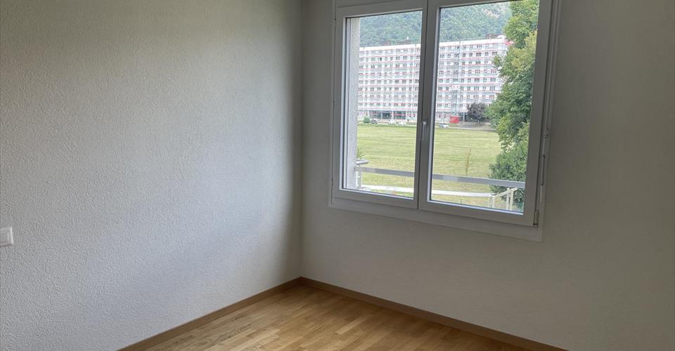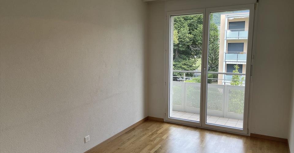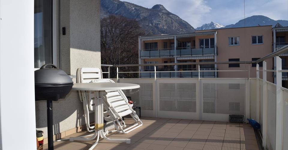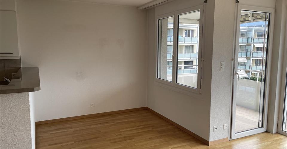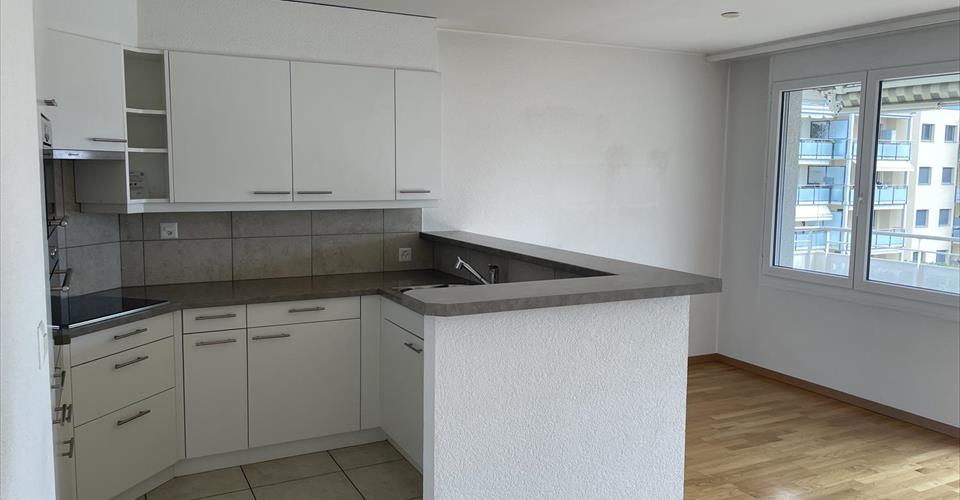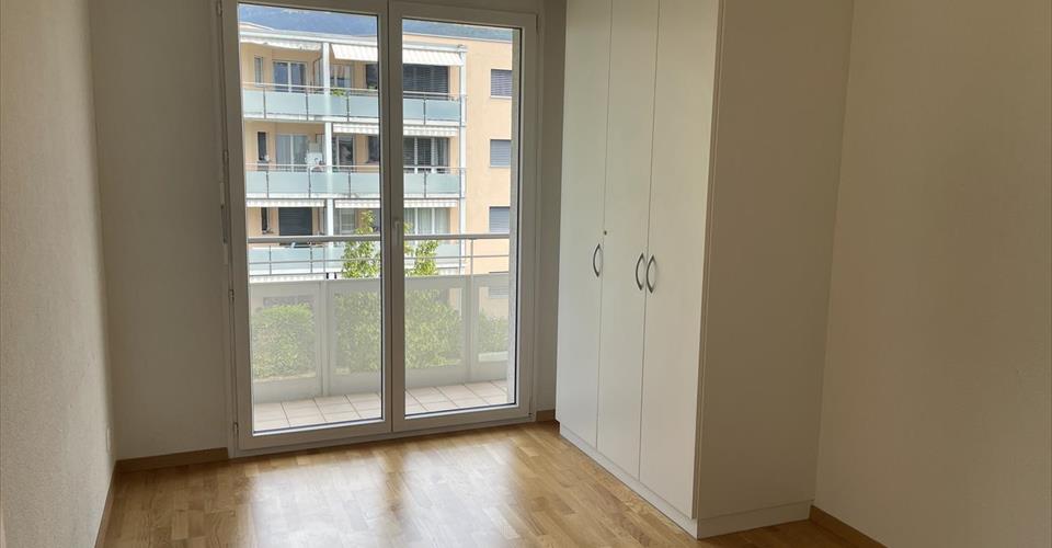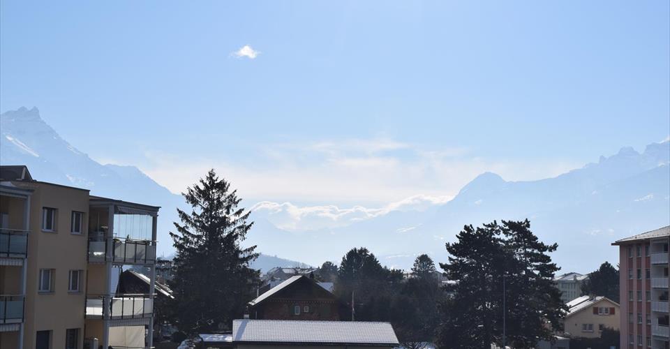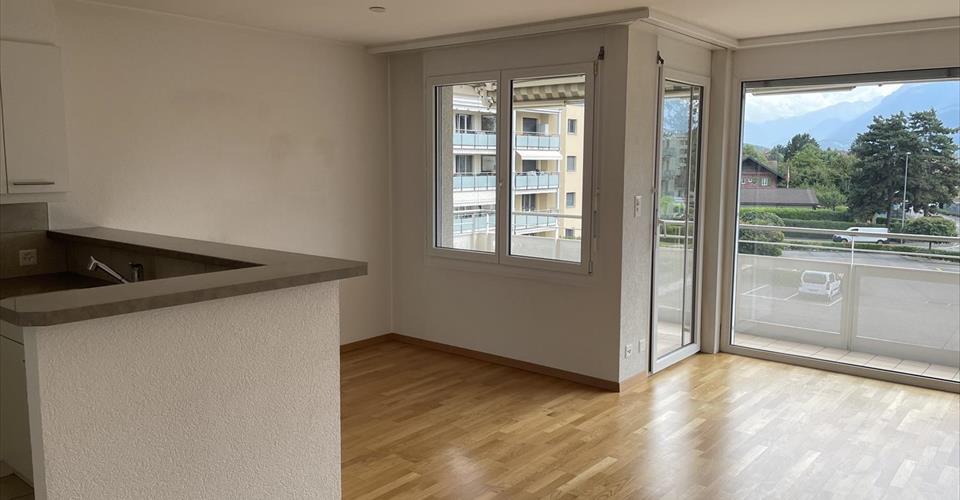 Pour investisseur – reprise de bail à loyer en cours Entrée et hall, cuisine ouverte sur grand living et coin repas, chambre principale avec douche-WC en suite, 2 chambres (donnant sur balcon Nord), 1 bains-WC & colonne lave-linge/sèche-linge. Balcon Sud. A disposition : 1 place de parc dans le garage. Dépendances : cave et local vélos. Divers : Bel et spacieux appartement. Le bâtiment se trouve à proximité du centre, des écoles, des commerces et de la gare CFF. Vue panoramique sur les montagnes. Appartement très ensoleillé.