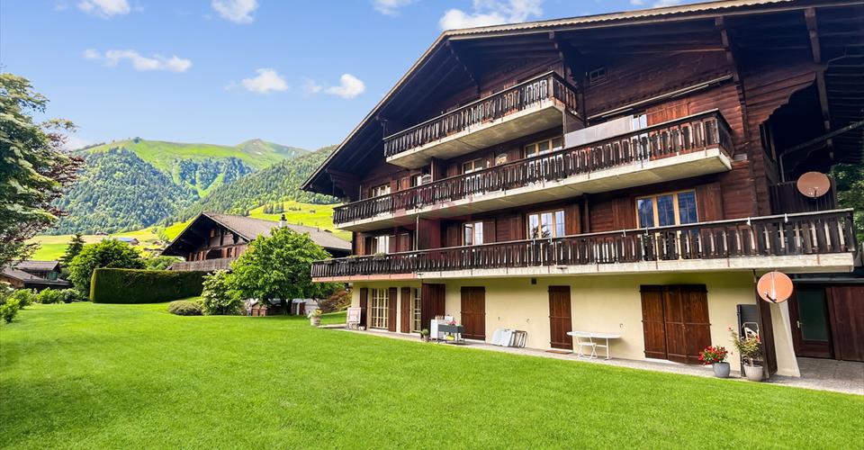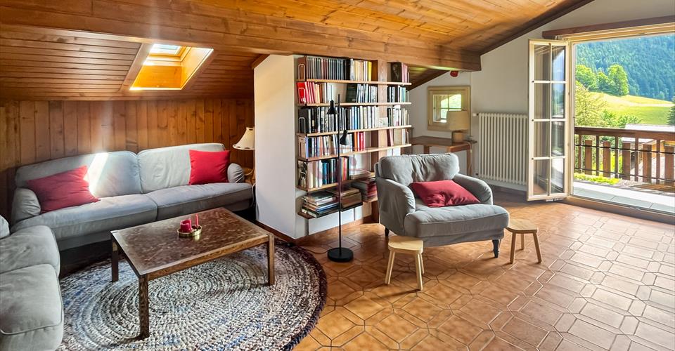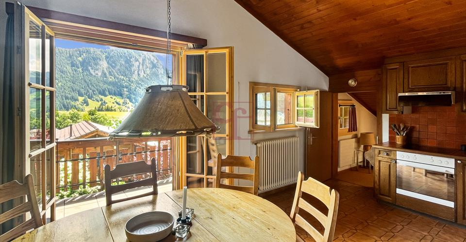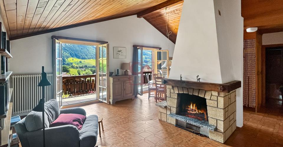 Bel appartement en copropriété à Château-d’Oex. Situé dans le quartier des Grands Prés, cet appartement, niché sous les combles d’un chalet de quatre étages, représente une belle opportunité pour ceux qui recherchent la tranquillité tout en restant à proximité des commodités. Il se compose d’un espace de vie ouvert avec cheminée, de deux grandes chambres à coucher, chacune dotée de sa salle de bains/douche privative, d’un WC invités et d’un balcon de 13,3 m² orienté sud. L’appartement dispose également de deux réduits, dont l’un avec fenêtre et velux. Une cave, une armoire à skis et un box garage complètent cette offre.