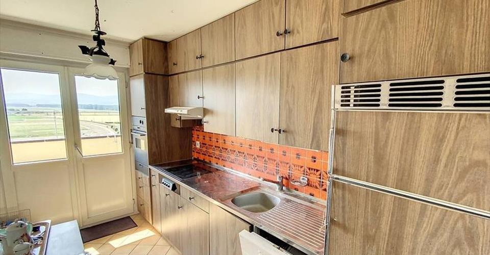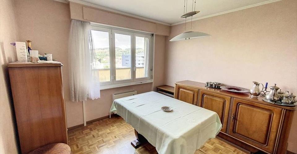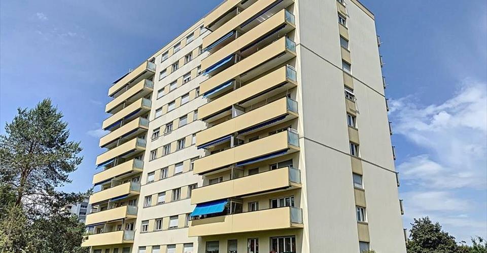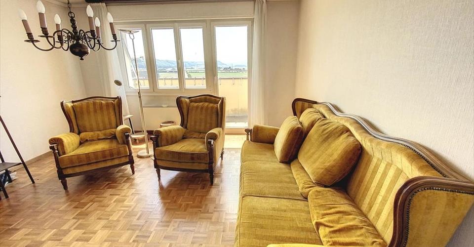 Agréable appartement traversant de quatre pièces, il est situé au dernier étage avec ascenseur. Situation dégagée dans quartier proche de la ville. Arrêt transports en commun à 3 minutes à pied, la gare CFF est à 8 minutes en bus. L’appartement se compose ainsi : hall d’entrée, cuisine agencée, grand salon orienté sud-ouest, 3 chambres à coucher, un WC séparé et une salle de bains avec baignoire. Il y a également deux grands balcons avec vue panoramique. Avec une cave privative au rez-de-chaussée. Une place de parc extérieure est réservée à l’appartement et il y a également à disposition un grand local fermé pour les vélos. L’appartement est habitable dans l’état. Les fenêtres sont en PVC, elles ont été remplacées à neuf en 2012. Plus d’informations et de photos sur demande. Pour obtenir une brochure détaillée, il est impératif de nous transmettre vos coordonnées complètes avec adresse postale, numéro de téléphone et adresse mail. Merci d’avance.