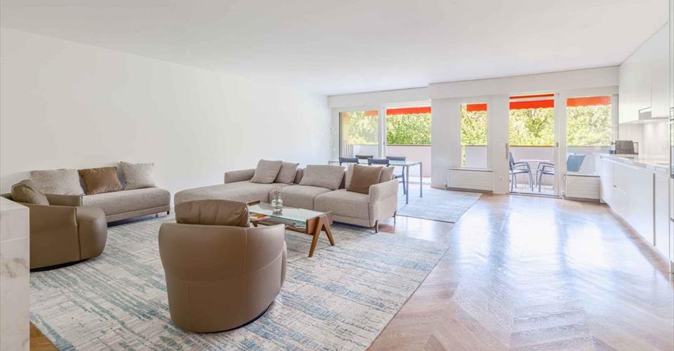 Cet appartement est situé au 3ème étage de la prestigieuse résidence de Cologny-Parc, au milieu d’un écrin de verdure et à proximité immédiate des commodités et des transports publics. Il comprend un joli hall d’entrée avec placards intégrés, un grand séjour/salle à manger, une cuisine équipée, deux chambres avec salles de bains complètes attenantes et un WC visiteurs. Doté de deux agréables balcons accessibles depuis toutes les pièces, vous pourrez profiter de la vue sur le parc. De luxueuses infrastructures sont à la disposition des occupants de la résidence, telles qu’une piscine intérieure, un jacuzzi, une salle de jeux et une salle de réunion. Un box ainsi qu’une cave complètent ce bien.