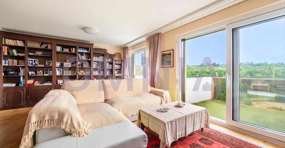 OMNIA Immobilier Genève vous présente en exclusivité : Face au Rhône et au Mont-Blanc, dans une résidence moderne de standing, cet appartement en attique de 88 m2 avec 10 m2 de terrasse offre une vue à couper le souffle. Au 6ème étage par ascenseur, il se compose d’une entrée, un grand séjour avec accès à la terrasse plein ciel qui fait face au Rhône et à la Montagne, une cuisine américaine, deux chambres qui font face aux vignes, divers rangements et deux salles d’eau avec WC. Une cave et deux parkings en sous-sol complètent cet appartement traversant, lumineux et ensoleillé qui séduira les amateurs de terrasses et de vues dégagées. Pour plus d’informations : OMNIA Immobilier Genève David NAPARSTEK
