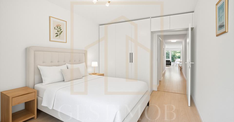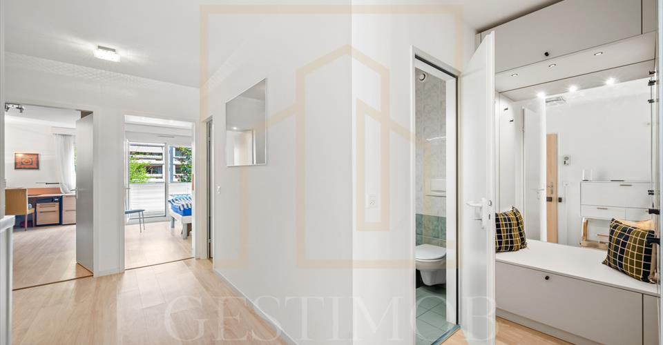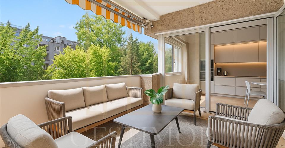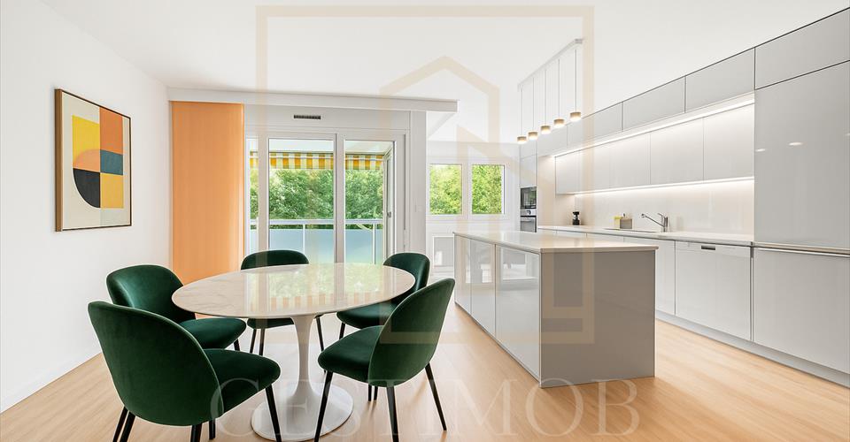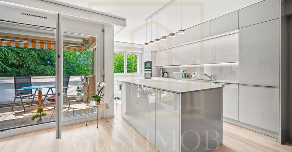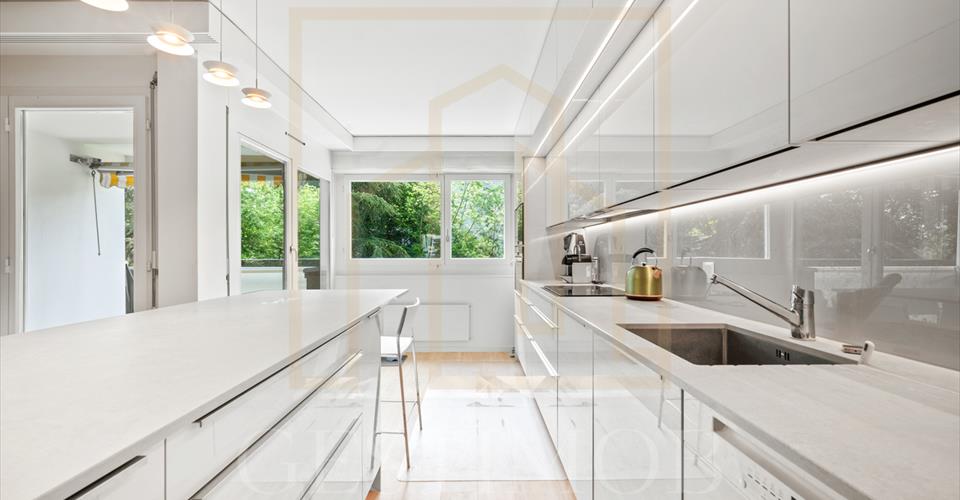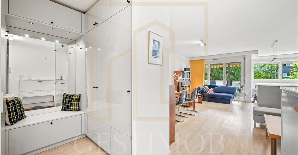 Dans un environnement paisible et verdoyant, à l’abri des nuisances, ce bel appartement traversant de 4 pièces offre une qualité de vie harmonieuse & fonctionnelle avec de belles vues dégagées. Située dans le quartier du Petit-Saconnex, il bénéficie d’un emplacement privilégié à proximité des commodités et permettant de rejoindre facilement le centre-ville en une quinzaine de minutes. D’une surface PPE de 97 m2 et d’une surface totale pondérée de 103 m2, l’appartement séduit par ses jolis volumes et la qualité soignée de ses finitions. Deux espaces extérieurs privatifs complètent agréablement ce cadre de vie avec deux balcons totalisant 12 m2 accessibles depuis le salon ainsi que les deux chambres. Rénové avec grand soin en 2023, par une architecte renommée, cet appartement offre les prestations suivantes : o Cuisine haut de gamme professionnelle avec îlot central fonctionnel o Électroménager premium o Présence d’une buanderie privative o Vestibule d’entrée avec rangements sur- mesure o Généreux salon et salle à manger o Rénovation du sol o Nombreux placards intégrés sur-mesure et réalisés par un menuisier o 1 WC visiteur dans l’entrée et une salle de bain avec WC o 2 belles chambres à coucher avec rangements L’appartement s’accompagne d’une place de parking intérieure en sus au prix de CHF 50’000 ainsi que d’une cave optimisée.