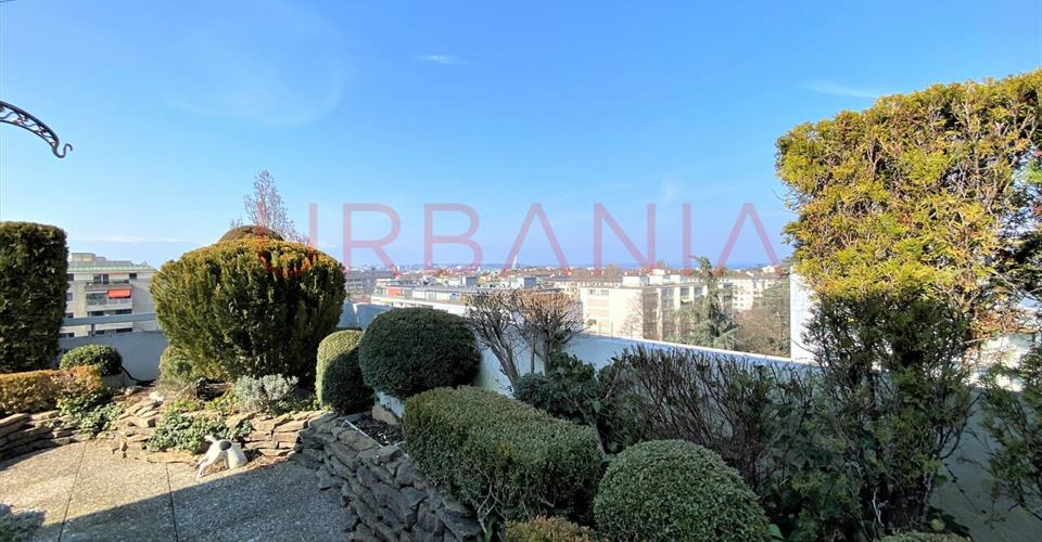 Situé au cœur du prestigieux quartier de Florissant, dans un immeuble de bon standing, ce bien rare se présente comme une véritable maison sur les toits. Il conjugue tous les atouts de la vie urbaine – proximité immédiate du centre-ville de Genève, des commerces, écoles et transports – avec un cadre de vie verdoyant, calme et exclusif. Dominant la ville, l’attique profite d’une vue panoramique sur le Jet d’eau et le Jura, offrant un panorama unique et changeant au fil des saisons. Avec une surface pondérée d’environ 200 m², l’appartement séduit par sa luminosité et son confort. Toutes les pièces s’ouvrent sur une splendide terrasse de 150 m², soigneusement paysagée, équipée d’une cuisine d’été et d’un cabanon, idéale pour recevoir ou simplement profiter de la quiétude et de la vue. Distribution intérieure : Hall d’entrée accueillant Cuisine habitable entièrement équipée avec matériel professionnel et accès terrasse Grand séjour lumineux avec accès terrasse Suite parentale avec placards sur mesure, dressing, salle de bains et WC attenants, accès terrasse Chambre à coucher avec accès terrasse Salle de douche avec WC / hammam Un box fermé ainsi qu’une cave viennent compléter ce bien d’exception, rare sur le marché genevois.