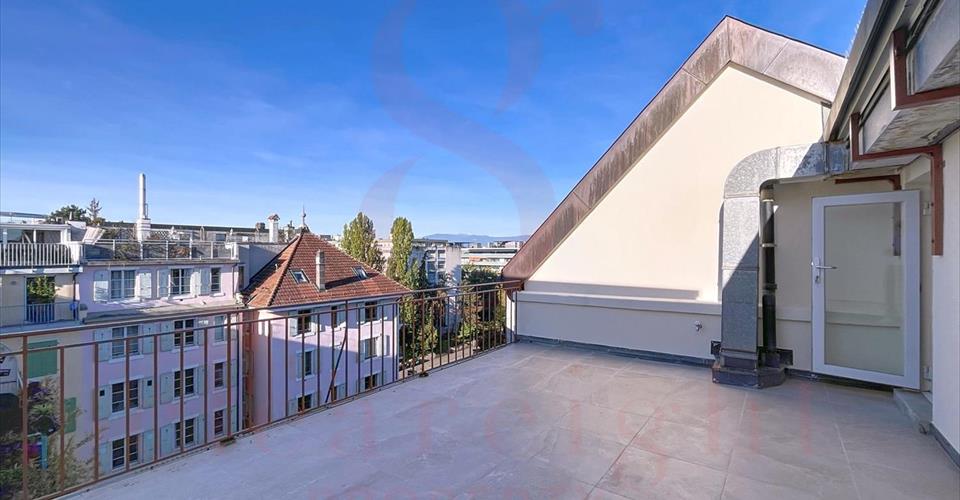 Au coeur d’un immeuble de caractère datant du début du siècle, découvrez un appartement rare de 100 m² utiles, alliant charme et confort moderne. Dès l’entrée, le ton est donné, de magnifiques volumes baignés de lumière grâce à une exposition Sud-Ouest optimale. La superbe pièce de réception séduit immédiatement par sa cheminée élégante, véritable centre de convivialité, et sa vue dégagée. Dans le prolongement, une cuisine contemporaine ouverte, parfaitement agencée. L’appartement se compose de deux chambres à coucher, calmes et lumineuses, ainsi que d’une salle de bains fonctionnelle. Atout rare et exceptionnel, une terrasse privative de 24 m² sur le toit, véritable oasis urbaine, où l’on profite d’ensoleillement du matin au soir, un espace unique pour recevoir à l’extérieur en plein centre-ville. Une cave complète ce bien d’exception, idéalement situé à quelques pas de la gare des Eaux-Vives, de Rive et de toutes les commodités.