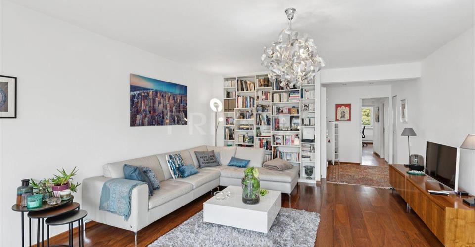 Situé dans le quartier résidentiel très prisé de Champel, cet appartement représente une opportunité rare sur le marché. Son emplacement privilégié, au coeur d’un environnement calme et verdoyant, le place à proximité immédiate des écoles, des commerces et des transports publics, tout en garantissant un accès rapide au centre-ville de Genève. Installé dans un immeuble élégant et entièrement rénové en 2012, ce bien se trouve dans les étages élevés, offrant ainsi une belle luminosité tout au long de la journée. Son séjour spacieux et lumineux constitue un véritable espace de vie confortable et convivial. Développant une surface PPE de 107 m², l’appartement séduit par son agencement traversant et sa décoration contemporaine. Il offre de nombreux rangements intégrés, une bibliothèque sur mesure, des stores intérieurs et un parquet élégant, le tout dans une ambiance raffinée. Les prestations haut de gamme et la rénovation soignée renforcent le caractère exclusif de ce bien. Un balcon de 10 m², orienté plein sud, prolonge harmonieusement les pièces de réception et constitue un espace extérieur privilégié. Grâce à la combinaison d’une rénovation soignée, de volumes généreux et d’une situation unique, cet appartement s’impose comme une opportunité rare sur le marché de Champel. L’appartement se distribue comme suit : Partie jour Hall d’entrée Cuisine semi-ouverte, entièrement équipée Spacieux séjour / salle à manger avec accès direct au balcon Partie nuit Deux chambres confortables dont une suite parentale d’env. 19 m² Salle de bains avec baignoire et douche à l’italienne WC visiteurs Réduit pratique Annexes Grande cave aménagée en sous-sol Grand local à vélos sécurisé dans l’immeuble Place de parking intérieure (incluse dans le prix de vente) Charges PPE : env. CHF 689.? / mois