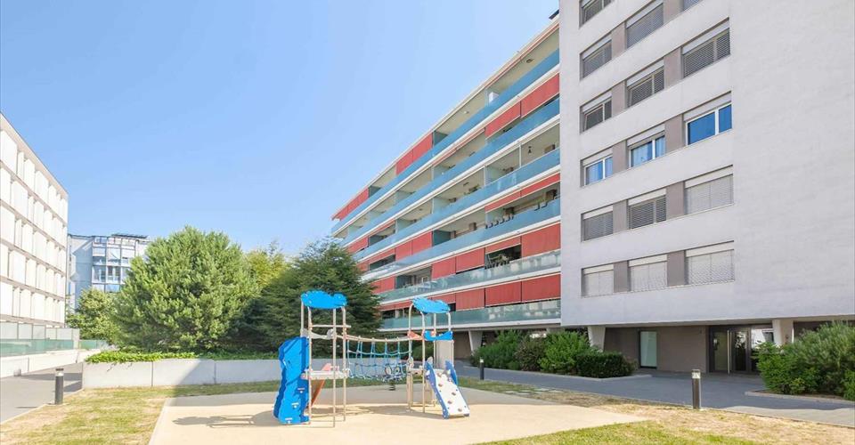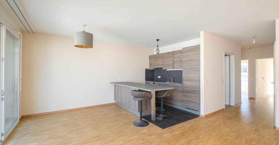 Bel appartement traversant au 5ème étage d’une surface PPE de 87m², situé dans un immeuble construit en 2014 sur la commune de Lancy. Il est composé comme suit : Hall d’entrée avec une armoire Cuisine ouverte et équipée avec îlot central Séjour Terrasse de 15m² orientée Ouest avec une agréable vue 2 chambres dont une avec armoire Salle de douche avec toilettes et espace buanderie Salle de bains avec toilettes Une cave au sous-sol. Une place de parking intérieur au sous-sol Interphone, ascenseur, local à vélos communs. A proximité de l’arrêt de bus “Cimetière St-Georges” (lignes 2 et 19 min). Eligible à CASATAX ! Pour une résidence principale, les droits d’enregistrement sont déduits (voir conditions d’application)