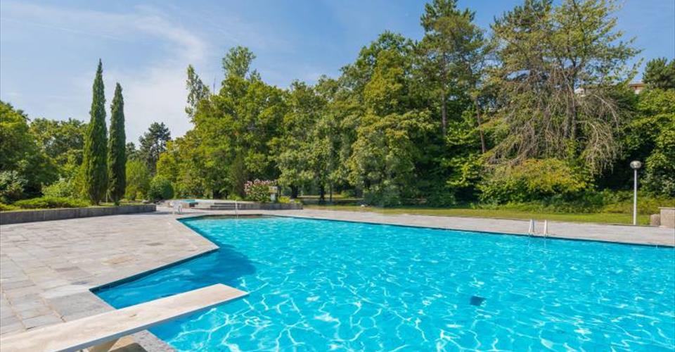 – Grand-Saconnex / Aéroport – Terrasse L’appartement est situé dans le secteur des organisations internationales, au 1er étage d’une copropriété de standing, bien entretenue et disposant de deux piscines. Le logement est traversant et offre une surface PPE de 124 m2 à laquelle s’ajoute une terrasse d’environ de 34 m2 avec vue sur le parc arboré. Le hall d’entrée ouvre sur un vaste salon/salle à manger prolongé par la terrasse. Une cuisine semi-ouverte est accolée à cet espace jour. L’accès à la partie nuit s’effectue par un large dégagement composé de deux armoires. Il distribue sur deux chambres ouvrant toutes deux sur un balcon. Une salle de bains/w.-c. avec baignoire et double vasque ainsi qu’un réduit pouvant être aménagé en salle de douche sont également disponibles. Une cave, une cabine ainsi qu’une place parking complètent l’objet. L’ensemble nécessite des travaux de rénovation. Il s’agit d’un bien en société immobilière (SI). L’acquisition porte sur des actions de la SI donnant droit à la jouissance du lot. Généralement, jusqu’à 80% de fonds propres au minimum sont nécessaires pour prétendre à une acquisition sous cette forme. Les banques étant néanmoins devenues beaucoup moins flexibles concernant les SI, il est toutefois préférable de disposer de l’entièreté du prix en fonds propres pour en financer l’acquisition.