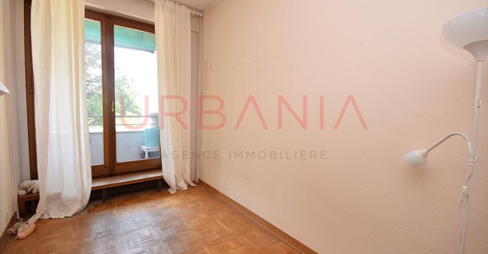 Bel appartement à rénover, idéalement situé à proximité des organisations internationales et de toutes les commodités de la ville. Offrant une magnifique vue sur le parc commun, cet appartement dispose également d’une belle piscine et d’une pataugeoire. Avec une surface habitable brute de 124 m², la distribution des pièces est la suivante : Hall d’entrée WC visiteurs Cuisine équipée ouverte Séjour avec accès au balcon Salle de bains Chambre Chambre Un parking et une cave en sous-sol complètent ce bien.