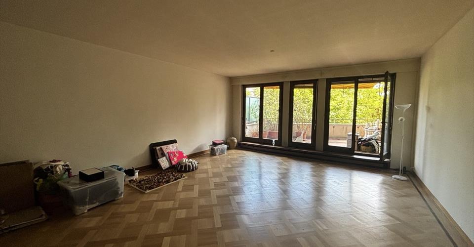 Bel appartement sis dans le secteur des organisations internationales, au 1er étage d’une copropriété de standing, bien entretenue, calme et disposant de deux piscines et d’un grand parc arboré. Traversant, ce logement offre une surface de 124 m2 à laquelle s’ajoute une terrasse d’environ de 34 m2 avec vue sur le parc. – Grand hall d’entrée – Vaste séjour, salle à manger, prolongé par la terrasse – Cuisine semi-ouverte L’accès à la partie nuit s’effectue par un large dégagement comprenant deux grandes armoires – Deux chambres ouvrant sur un balcon. – Salle de bains/WC avec baignoire et double vasque – L’appartement comprend également un réduit pouvant être aménagé en salle de douche ou WC visiteurs Une cave, un vestiaire (piscine) ainsi qu’une place parking complètent le bien. L’appartement nécessite des travaux de rénovation. Il s’agit d’un bien en société immobilière (SI). L’acquisition porte sur des actions de la SI donnant droit à la jouissance du lot. Généralement, jusqu’à 80% de fonds propres au minimum sont nécessaires pour prétendre à une acquisition sous cette forme. Les banques étant néanmoins devenues beaucoup moins flexibles concernant les SI, il est toutefois préférable de disposer de l’entièreté du prix en fonds propres pour en financer l’acquisition. Une reprise du financement existant peut-être envisagée