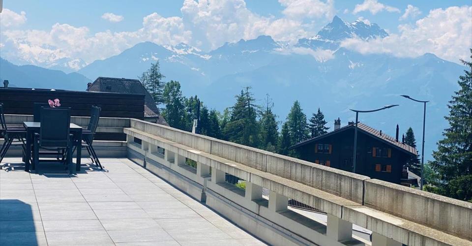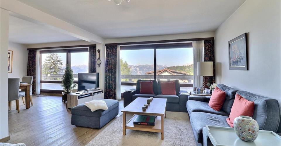 Appartement situé au coeur de la station de Villars et à deux pas de l’arrêt du bus, proche des commerces et de toutes commodités. Bénéficiant d’une vue panoramique sur les Alpes. DESCRIPTION APPARTEMENT 4.5 PIÈCES Hall d’ entrée – bureau Spacieux séjour avec baies-vitrées menant sur la terrasse Sud-Ouest Chambre double, en suite avec la salle de bain baignoire, placards et baies vitrées menant à la terrasse Sud-Ouest Cuisine ouverte entièrement équipée Salle à manger avec baies-vitrées menant sur la terrasse Sud-Ouest Chambre double avec placards et portes-fenêtres menant à la terrasse Sud Chambre double avec placards, jouissant d’une magnifique vue sur les Alpes, 2 portes-fenêtres menant sur la terrasse Salle de bain avec baignoire Grande terrasse d’angle Une place de parc en sus pour Chf. 50’000.- Charges annuelles 2025 : Chf 5’589.– + fonds de rénovation Chf 1’053 .– + chauffage Chf 2’430.– + garage Chf 480 .– Ce document n’a aucune valeur contractuelle, les informations présentées ne sont données qu’à titre indicatif et ne font pas office de contrat.