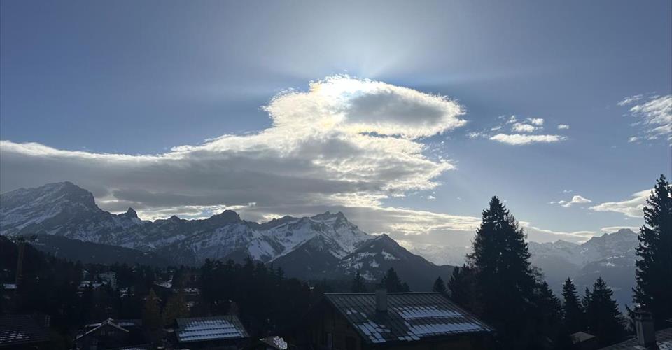 Situé à Chesières, à 5 minutes à pied du télécabine et quelques minutes en voiture du centre de Villars, de ses commerces et de la gare, cet appartement jouit du calme et de la vue panoramique sur les Alpes. DESCRIPTION : APPARTEMENT 4 PIECES Séjour, salle à manger avec cheminée, fenêtre Est et porte-fenêtre donnant accès au balcon Sud Cuisine ouverte entièrement équipée avec fenêtre Nord Mezzanine d’environ 30 m2 aménagée, une partie avec une chambre fenêtre Nord et une partie salon et bureau avec velux et fenêtre Sud Chambre double avec fenêtre Nord, placards encastrés Chambre simple avec fenêtre Sud WC visiteurs Salle de bain avec baignoire Charges annuelles 2024 : CHF 5’115.60 + chauffage CHF 2’520.– + fonds de rénovation CHF 3’150.– + garage CHF 513.60 Ce document n’a aucune valeur contractuelle, les informations présentées ne sont données qu’à titre indicatif et ne font pas office de contrat.