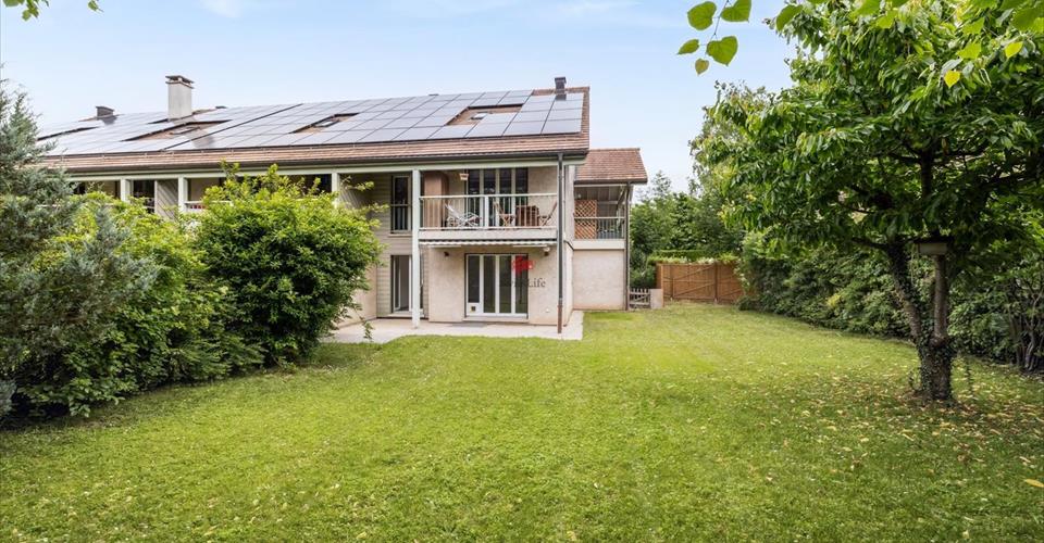 À vendre – Appartement lumineux avec jardin privé à Puplinge (GE) Situé dans la campagne genevoise proche toutes commodités et de la nature, le village offre un environnement calme, loin du stress urbain. Cet appartement de 4 pièces en rez-de-jardin combine lumière naturelle, fonctionnalité et emplacement stratégique (proche CEVA et ville de Thônex). Puplinge offre une belle qualité de vie, qualité de l’air et une tranquillité sonore tout en ayant une vie associative dynamique et des événements locaux (marchés, fêtes, etc.). Preuve en est : les personnes qui habitent Puplinge et Jussy ne veulent plus déménager ailleurs. Points forts : • Superficie optimisée avec une disposition traversante et lumineuse • Séjour spacieux ouvrant sur une terrasse ensoleillée et un jardin privatif arboré • WC d’accueil avec lave-main • Cuisine entièrement équipée • 2 chambres confortables avec placards intégrés et acces extérieurs via des portes-fenêtres • Salle de bains complète (baignoire, douche, lavabo) • Nombreux rangements dans un grand hall d’entrée • Parking en sous-sol et cave inclus Les propriétaires ont financé l’installation des panneaux solaires l’année dernière pour des économies d’énergies à venir pour cette année 2025. Cette acquisition est au bénéfice de Casatax, c’est à dire que toute acquisition au titre de la résidence principale bénéficie de droits d’enregistrement notariés réduits de CHF 20’616 !