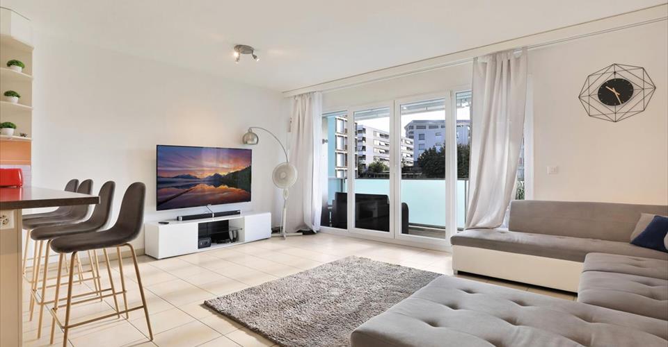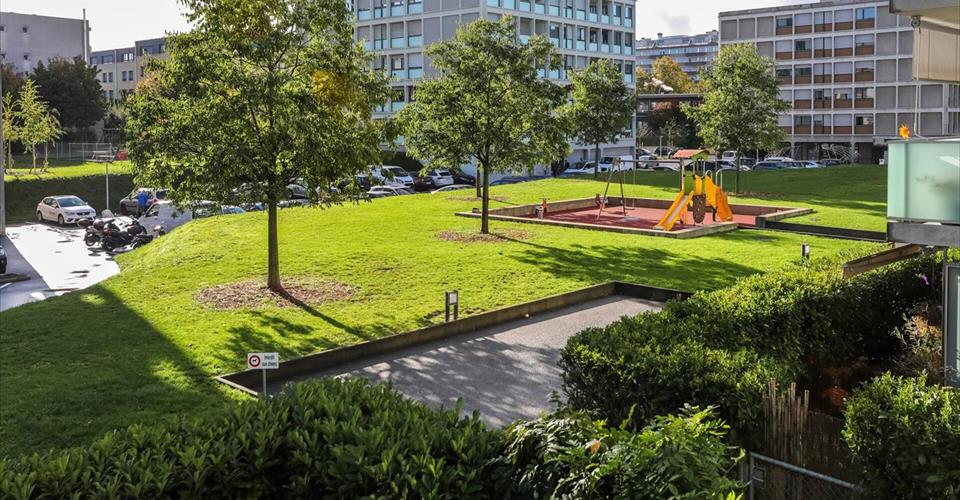 À vendre à Châtelaine : Appartement traversant à proximité des transports et des commerces La Perle Immobilier vous propose ce magnifique appartement traversant situé à Châtelaine dans un immeuble récent. À proximité directe des transports et des commerces, cet appartement saura vous séduire par ses beaux volumes et son excellente luminosité. Il se compose d’une cuisine entièrement équipée, ouverte sur un spacieux salon-séjour qui donne accès à un agréable balcon, surplombant un espace verdoyant. La partie nuit comprend deux chambres de taille confortable avec placards intégrés ainsi qu’une salle de bains moderne. Une pièce de rangement très utile ainsi qu’un toilette visiteurs complètent avantageusement ce bien. Cette opportunité dispose en outre d’une place de parking de grande taille en sous-sol ainsi que d’une cave. ———————————————————- La Perle Immobilier offers this beautiful apartment located in Châtelaine in a recent building. Close to transport and shops, this apartment will seduce you with its beautiful volumes and excellent brightness. It consists of a fully equipped kitchen, open to a spacious living room that gives access to a pleasant balcony, overlooking a green area. The sleeping area includes two comfortable sized bedrooms with built-in wardrobes as well as a modern bathroom. A very useful storage room and a guest toilet are advantageously completing this property. This opportunity also has a large parking space in the basement and a cave.